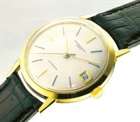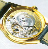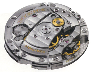 Часы Vacheron Constantin всегда входили и входят в число лучших швейцарских часов. Именно в 60-е годы модели этого старожила Женевы ни в чем не уступали произведениям Patek Philippe и держались на том же уровне дизайна, техники и разнообразия. Годовой выпуск продукции у этих двух женевских часовых мануфактур тоже выражался величинами одинакового порядка. К 250-му юбилею в 2005 году знаменитая часовая марка сделала себе особый подарок: собственное производство часовых механизмов и собственный часовой механизм с автоматическим заводом. Время первых научных часов Vacheron & Constantin с автоподзаводом наступило еще в 1 949 году. Базовый механизм поставляла тогда фирма Jaeger-LeCoultre. Oy был во многом идентичен с IWC Калибром 476, а у Vacheron & Constantin был выпущен с наименованием 477 (модифицированный 477/1). Снабженный пока еще небольшой маховой массой автоматический завод вращался только в одном направлении. Впервые он был изготовлен к золотым мужским наручным часам под номером по каталогу 4871, которые были выпущены в конце 1949 года. В 1955 году последовали первые модели с автоматикой, ротор которой вращался на все 360*. В последовавшие за этим годы поставщиком бронируемых базовых механизмов оставалась Jaeger-LeCoultre. В связи с изменением условий владельцев мануфактуры в круг поставщиков механизмов сперва были приняты Frederic Piguet, а потом - Girard-Perregaux. Ни по техническому уровню, ни по качеству эти фирмы-производители не достигали уровня Jaeger-LeCoultre, но зато их продукция была значительно дешевле. При разработке концепции нового собственного автоматического механизма были заданы конкретные длина и толщина, так как ему нужно было заменить три прежде применявшихся калибра. При диаметре 26,2 мм и толщине 3,6 мм главным оставалось обязательное условие тонкости, и конструкторы опять были вынуждены идти на компромиссные решения. Таким образом, основные компоненты механизма состояли из довольно тонких деталей: платины, мостов заводного барабана и зубчатого механизма, а также кронштейна баланса. Автоматический завод был встроен в оба моста и действовал только в одном направлении -механизм для изменения направления движения ротора едва ли можно было разместить в тесном внутреннем пространстве. Двухплечий баланс работает с плоской спиралью, тонкое регулирование осуществляет система Triovis. Co стороны Vacheron Constantin было дано разъяснение, что Triovis представляет собой лишь переходное решение до тех пор, пока не появится возможность получать от Nivarox тот винтовой баланс, который нам уже известен по Калибру 975 Jaeger-LeCoultre. Отдельная платина со стороны циферблата позволяет расположить различные указатели, включая указатель запаса хода. Общая конструкция нового калибра 2475 выполнена традиционно и выдает почерк ответственного конструктора. Последний поработал прежде в фирмах Nivarox, Frederic Piguet и Jaeger-LeCoultre. Жаль, что он не был знаком с прежним автоматическим Калибром от Vacheron & Constantin. В противном случае он, может быть, кое-что позаимствовал бы из конструкции и стиля этого великолепного технического решения. В общем и целом новый Калибр 2475 Vacheron Constantin представляет собой солидную конструкцию, у которой особенно привлекательно выполнена окончательная отделка. Часы, переданные новой фабрикой в Ле-Сантье для испытаний, производили впечатление диаметром корпуса, указателями дня недели, даты и запаса хода. Даже «Женевское Клеймо