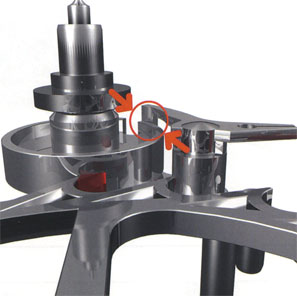 Новый спуск от Audemars Piguet Вложение 39568 Вложение 39569 Зато современной часовой промышленности с ее широко автоматизированным производством и ее во много раз более точными измерительными методами подобное вполне по силам. В Audemars Piguet решили создать собственную конструкцию спуска, которая хоть отчасти и базируется на разработках Робина, но все же имеет мало общего с изобретением 1791 года. В первую очередь, за счет миниатюризации, масштабы которой за малыми исключениями часовые мастера в конце 18 века не могли себе даже представить. Спусковой механизм новой конструкции был представлен на Женевском часовом салоне в апреле прошлого года, а его предварительный показ состоялся еще минувшей зимой в испытательных лабораториях в Ле-Горассю (Валле-де-Жу). Специалисты оценили применение новых материалов, например углепластика, однако в конце концов было решено использовать исключительно традиционные материалы. Мысль ориентироваться при создании нового спуска на прототип Робина возникла в 1999 году, когда часовые мастера АР случайно нашли чертеж спуска 18 века: они обнаружили в нем теоретические достоинства и решили подробно изучить его конструкцию и понять, почему такое работоспособное устройство не имело успеха, который, судя по проекту, вполне заслуживало. В настоящий момент новый спуск имеет в основе ходовое (анкерное) колесо с зубьями новой формы, имеющими мало общего с обычными угловатыми зубьями швейцарского анкерного спуска. Причина этого различия в том, что сам процесс передачи усилия от зубчатой передачи на баланс происходит между рабочими поверхностями анкерных палет с одной стороны и передней поверхностью зуба анкерного колеса с другой. Поэтому часовщики говорят также о так называемой «разделенной передаче импульса». Новая конструкция Audemars Piguet имеет другой вид анкера с палетами из рубина, правда, уже не имеющими движущих плоскостей, но служащими лишь для того, чтобы останавливать ходовое колесо между отдельными импульсами. Вызываемые балансом импульсы, в противоположность процессу анкерного спуска, происходят только при каждом втором полуколебании баланса. Только тогда зуб анкерного колеса прикасается к сидящему на балансе спусковому камню. Во время передачи импульса зуб колеса очень недолго касается палеты, причем почти без трения; одновременно импульсный камень баланса скользит в вилку анкера. Его единственная функция состоит в том, чтобы качнуть анкер к находящемуся напротив него ограничительному штифту, чтобы ненадолго остановить ходовое колесо. Вместо предохранительного копья, которое у обычного анкера находится в центре вилки и обеспечивает контакт между анкером и балансом в момент свободного колебания баланса после импульса, у спускового механизма Audemars Piguet появился двуплечный рычаг, который сидит вверху на анкерной вилке (рис. 1). Этот рычаг при повороте баланса в направлении часовой стрелки входит своим ступенчатым концом в разрезанный край предохранительного ролика и служит для того, чтобы анкер не мог изменить свое положение при свободном колебании баланса. При вращении баланса в направлении против часовой стрелки анкер скользит к своему противоположному упору, сидящий на анкерной вилке рычаг легко поворачивается, и его ступенчатый конец теперь находится с наружной стороны предохранительного ро