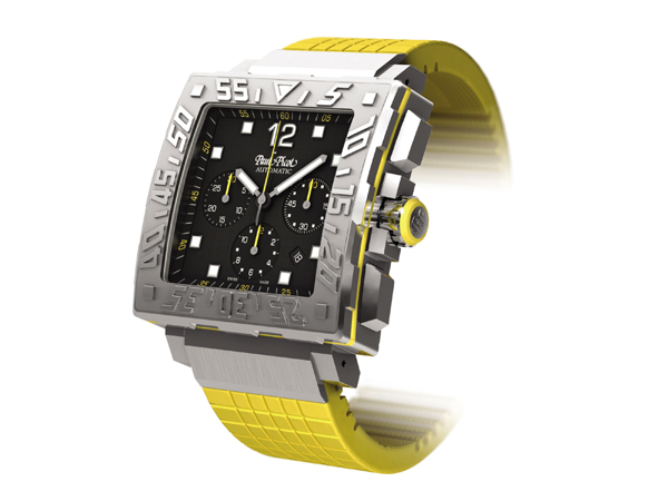 Новинка имеет круглый корпус, изготовленный из титанна, диаметром 48 мм, водонепроницаемый до 300 метров. На торце рифленой защищенной завинчивающейся заводной головки, расположенной на 3 часах, выгравирован логотип бренда PAUL PICOT. Завинчивающиеся пушеры хронографа расположены на 2 и 4 часах. На корпусе установлен гелиевый клапан. Сапфировое стекло с антибликовым покрытием защищает циферблат матово-черного цвета, с накладными арабскими цифрами, часовыми индексами, часовой и минутной стрелками с люминесцентным покрытием белого цвета. Модель оснащена швейцарским автоматическим механизмом PAUL PICOT PP 1600, функциями индикации часов, минут (посредством соответствующих центральных стрелок), секунд (на малом боковом циферблате, расположенном на 9 часах), дня недели и даты (посредством соответствующих буквенного и цифрового указателей в сдвоенных апертурах, расположенных на 3 часах), а также с хронографом (центральная секундная стрелка желтого цвета, 30-минутный счетчик, расположенный на 12 часах и 12-часовый счетчик, расположенный на 6 часах). Поставляется на черном или желтом каучуковом ремешке с титановой застежкой. Лимитированный выпуск 500 экземпляров. Источник: http://www.horozima.com/2013/06/paul...urce=BP_recent |