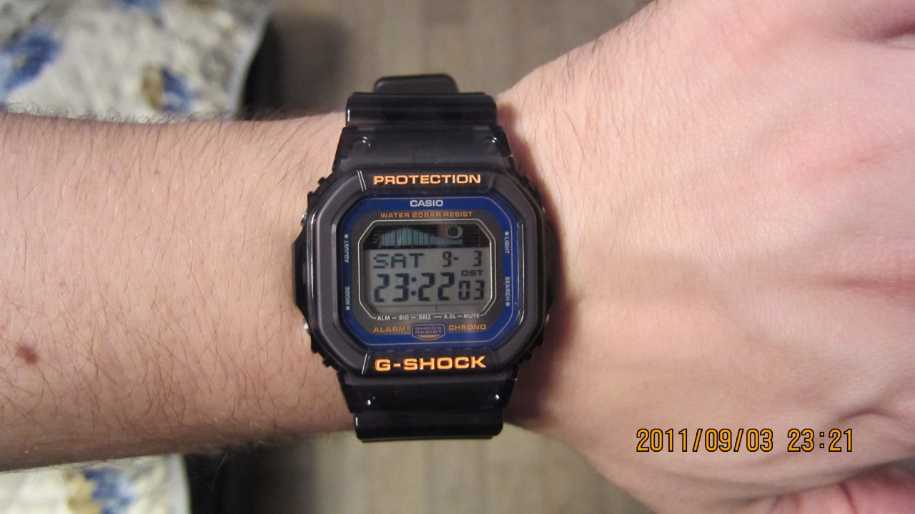 http://www.ebay.com/itm/CASIO-WATCH-...item2ea93b87f6 но не уверен, что по цвету и крепежу подойдет, хоть и одна серия, в смысле родственники по внешнему виду. Не морочься, "бабскими" они эти пятнышки не выглядят, скорее на следы от воды похоже больше. Это же серферская линия, на каждом GLX разный рисунок. |