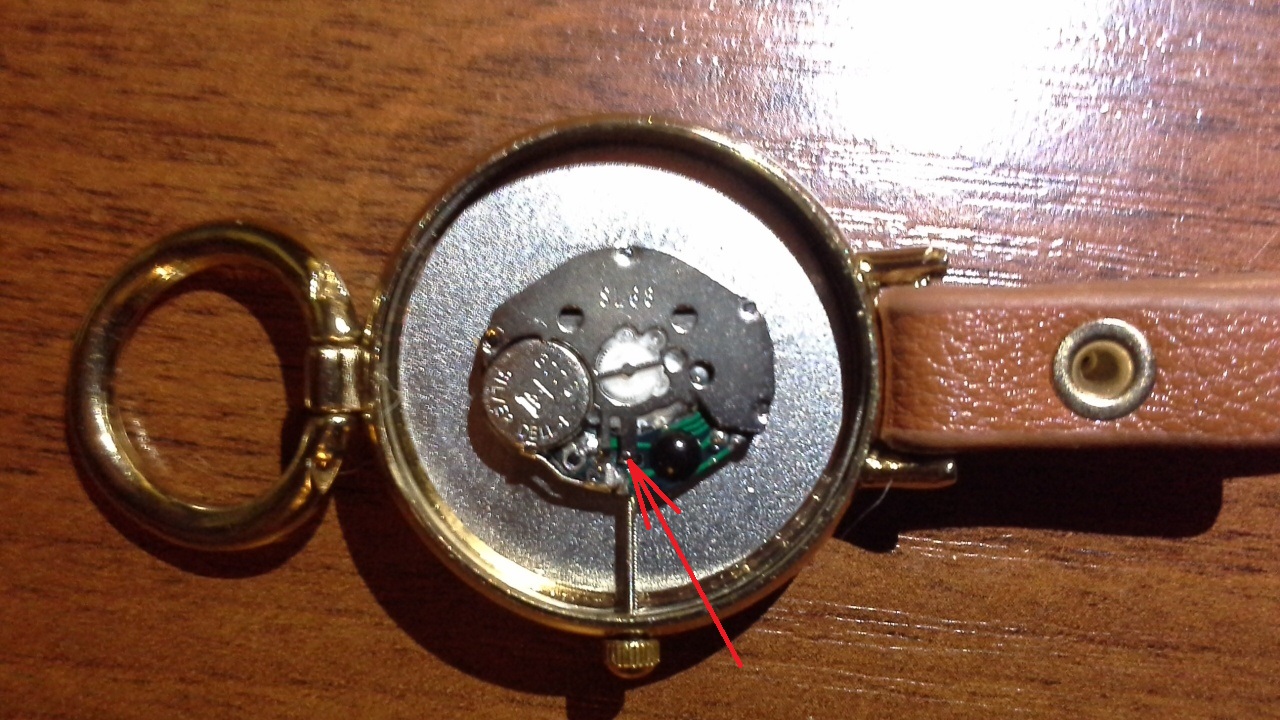 Если не сложно уточните, в какое именно место давить (сейчас под рукой часов нет, попробовать оба варианта не могу, прикладываю фото с обозначением 2-х мест). Номер 2- это механизм, который переключает положения "перевод часов" и "перевод даты", давить на него как-то боязно- хлипковат с виду. Второй вопрос- давить надо в обычном положении головки перевода стрелок или надо вытащить в одно из положений перевода стрелок/даты? |