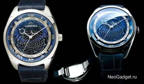 Capanola Cosmosign – это новая модель часов, первый образец которых был выпущен 6 лет назад. В ней содержится на 150% больше звёзд и применяется новая конструкция дизайна, которая напоминает старинные морские компасы и секстанты. Часы выпускаются с высококлассным швейцарским часовым механизмом и поставляются с синим ремешком из крокодиловой кожи. Функции Campanola Cosmosign: - швейцарской часовой механизм с точностью ±20 сек/месяц; -1027 звезд и 166 звёздных кластеров от Андромеды до Ориона; - календарь; - диаграмма позиций Солнца и Луны; - диаметр: 44 мм; - толщина: 15 мм; - гарантия производителя 3 года. Источник: http://neogadget.ru/kosmicheskie-chasy-ot-citizen/ |