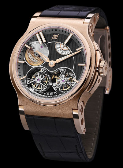 Новая модель Verdict 45mm tourbillon от швейцарской часовой компании HYSEK, которая была представлена на международной выставке Baselworld-2012, имеет корпус изготовленный из титана или из 18-каратного розового золота и титана, диаметром 44,5 мм, толщиной 13,6 мм, водонепроницаемый до 30 метров. Сапфировое стекло с антибликовым покрытием защищает циферблат темно-серого цвета, с серебристой центральной частью, и с накладными арабскими цифрами.