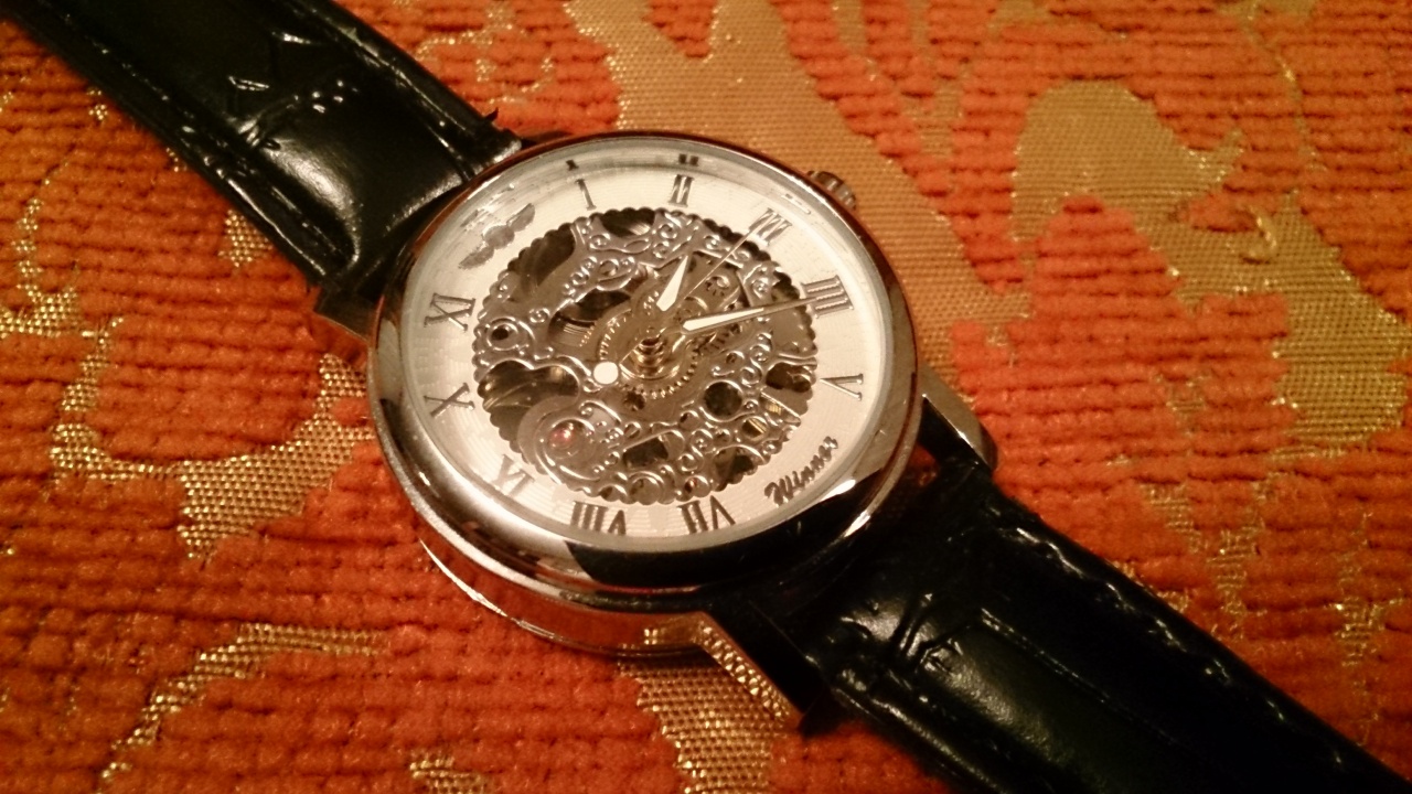 Подарили часы китайского производства - Winner Skeleton. Автоподзавод, ручной завод (тугой), ход ~ +10 сек. в сутки, ремень дермонтиновый, корпус - ланунь, покрытый хромом. Надпись сзади на крышке: deville made stainless steel back, на ремешке написано - Winner, genuine leather. Водозащиты нет. Стелка обычные, не пластик.