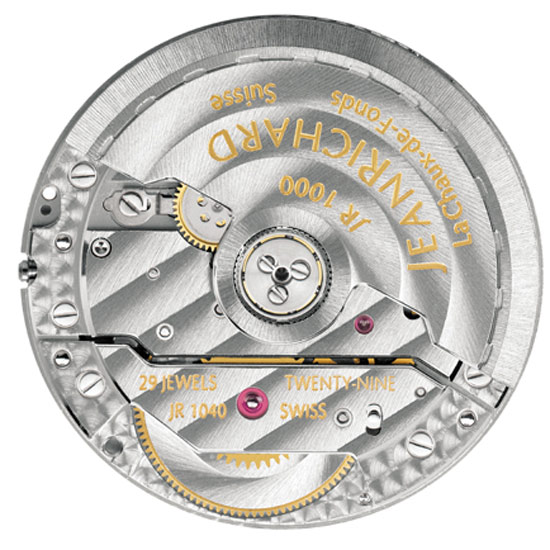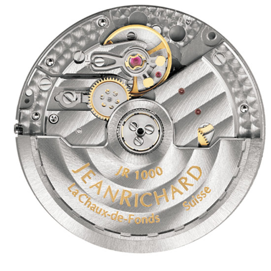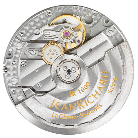 Каждые часы JEANRICHARD оснащены механизмом, разработанным и произведённым непосредственно в стенах собственной мануфактуры. Маркой был разработан свой собственный часовой механизм JR1000, а так же портфолио из 9-ти усложнений. Пять лет технических изысканий позволили прийти к реальному созданию этого механизма с автоматическим подзаводом, в котором используются технические решения, гарантирующие его абсолютную надежность. Калибр JR1000 демонстрирует, таким образом, превосходные технические показатели и сохраняет отличную стабильность хода. Кроме того, конструкция механизма позволяет интегрировать различные усложнения. Это позволяет осуществить почти неограниченное расширение функций. Например, часы можно дополнить указателем второго часового пояса в квадратном окошке на циферблатеили линейным указателем запаса хода.