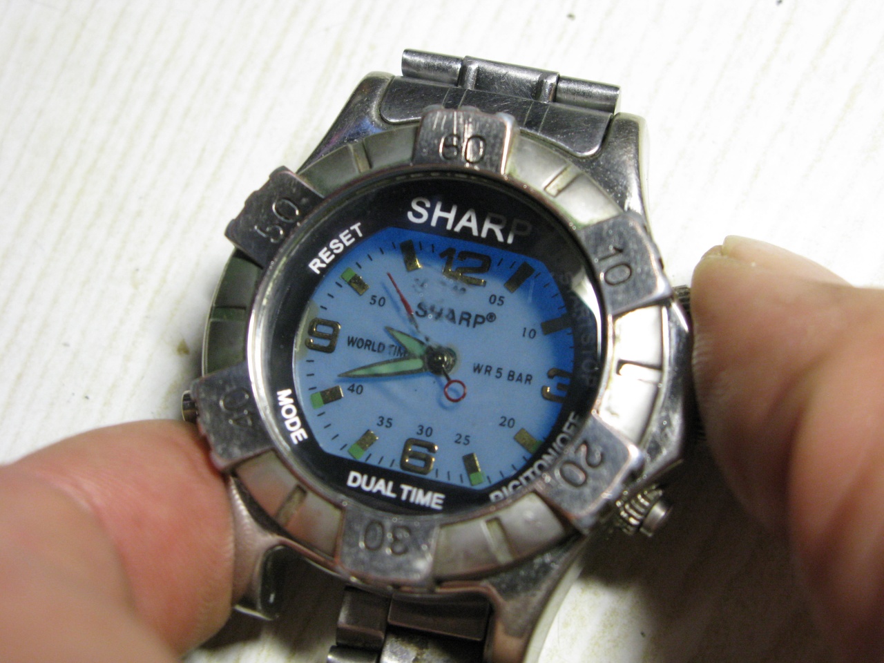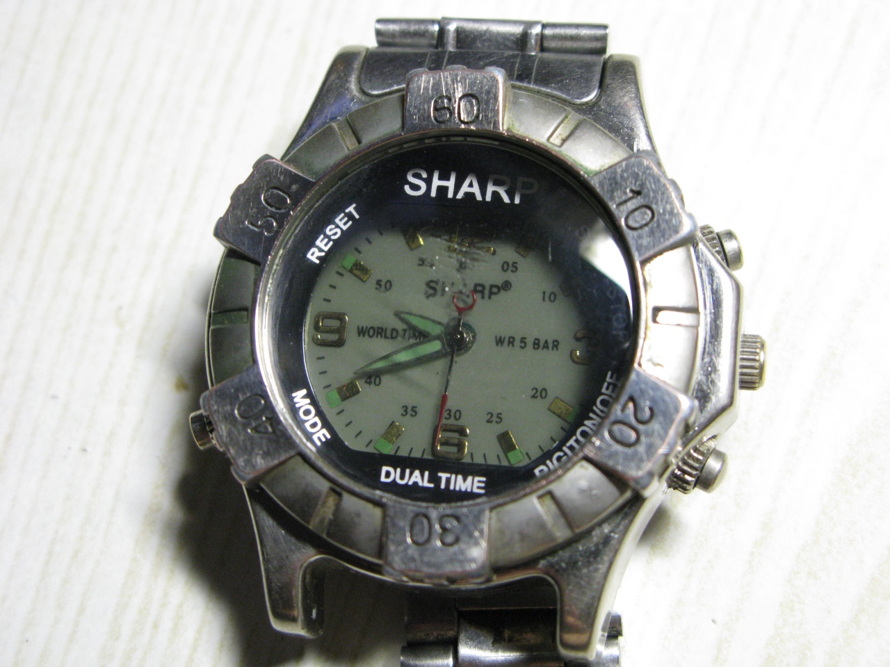 у меня были похожие на эти часы шарп, покупали в палатке на базаре на украине, в 98 году примерно стоили они 30 или 35 гривен, включались там в стекле электронные часы, будильник пищал, корпус сделан не пойми из чего, об обычный рукав выпуклые надписи какбы из металла стёрлись в хлам, под краном рас намочил, вода под стеклом появилась, но после просыхания заработали нормально, крышка задняя защёлкивалась просто и была без прокладок, браслет убогий, сломался через месяц, кароче часы полное днище, но мне тогда лет 14 было поэтому что родители купили тому и рад был, следующие часы были у меня командирслие, китайские тоже за 35 гривен, были куплены тоже на украине в 2002 году, в нашей дыре тогда только китайское палево продавалось. Следующие часы были шоки, следующие и первые нормальные