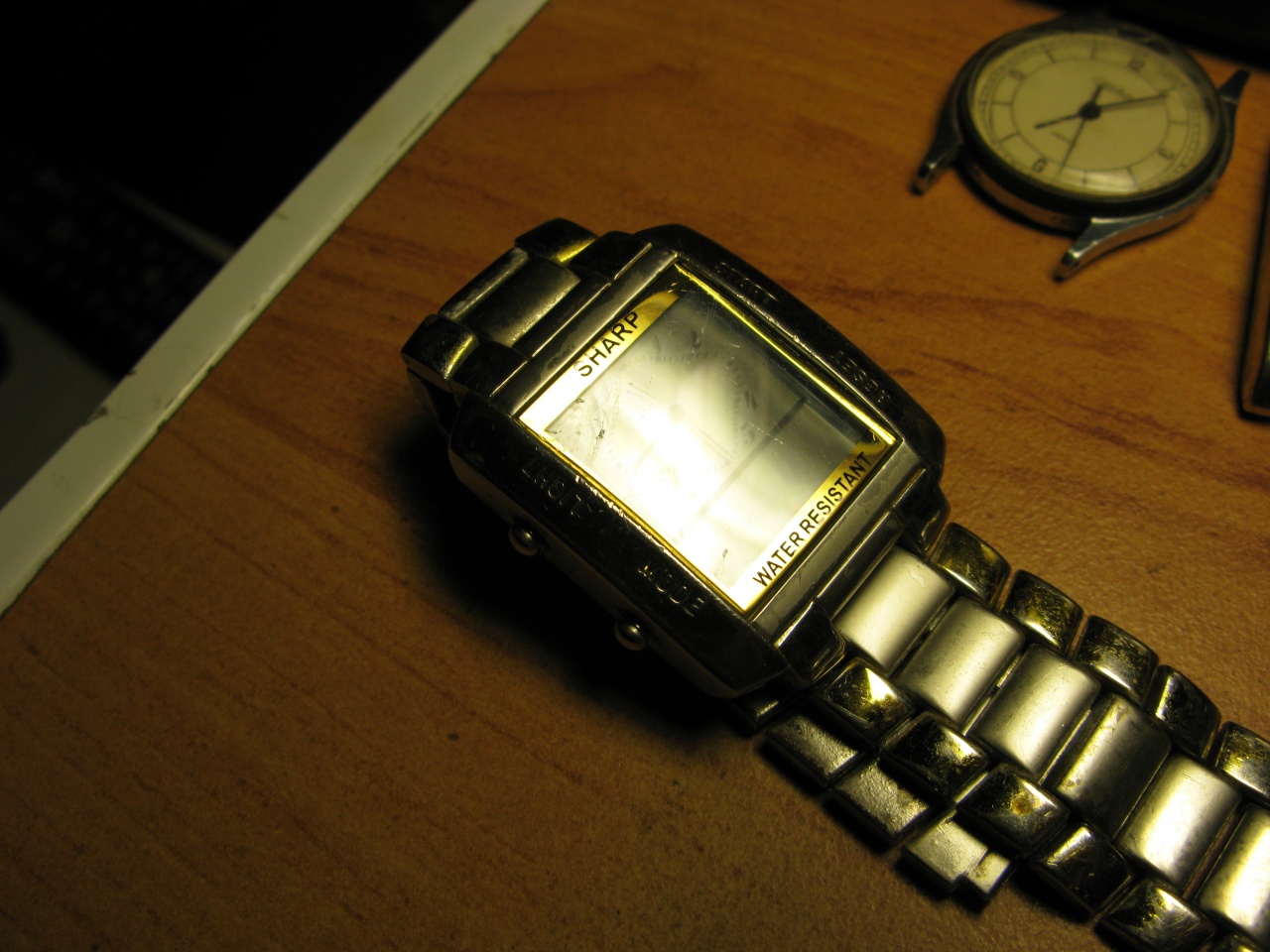 В прошедшие выходные на барахолке тоже выудил из часового хлама Sharp. И даже не один. Меня не волнует "ценность" этих часов, просто интересно было покопаться во внутренностях, для общего "развития".)) Вот оно чудо враждебной техники (Пятая планета)