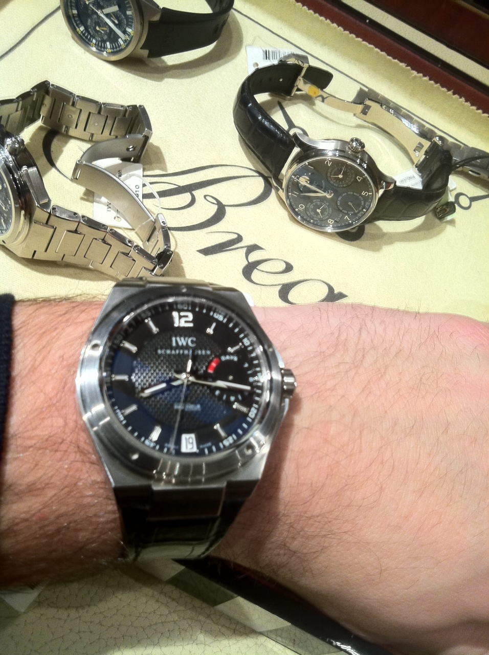 Давно присматривался к различным моделям IWC. Многое примерял. Но купить пока так ничего и не решился. В новогодние праздники, будучи в Европе, еремерял несколько вариантов и решил, что обязательно для детального знакомства с маркой приобрету одну из моделей.