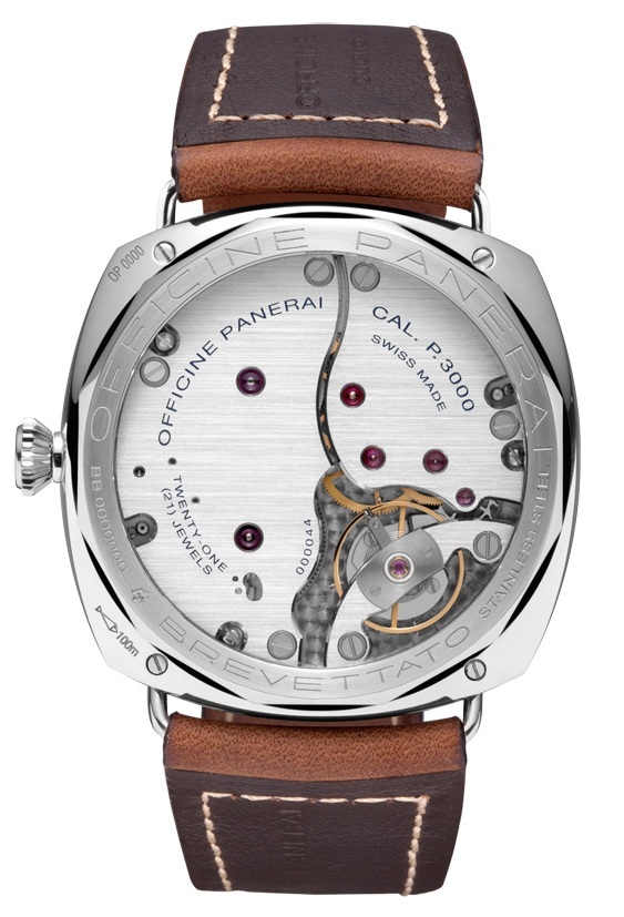 Модель оснащена мануфактурным механизмом с ручным заводом Panerai P.3000, с функциями индикации часов и минут (посредством соответствующих центральных стрелок).