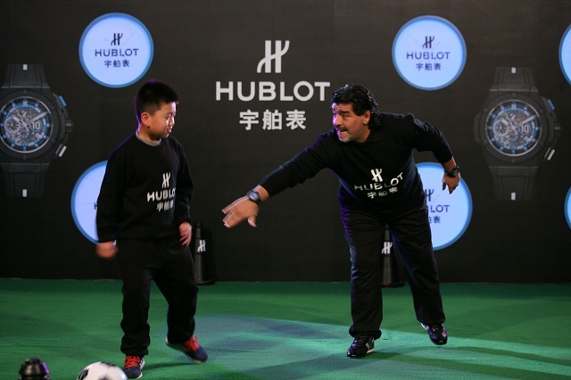 В Шанхае на Hublot One Million RMB Goal Shooting – благотворительного мероприятия, направленного на помощь китайским детям больным СПИДом, швейцарская часовая компания Hublot представила новую модель часов в честь Диего Марадоны.