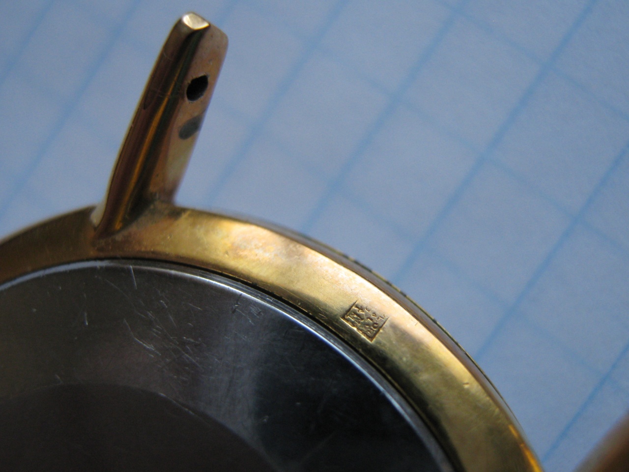Здравствуйте, помогите пожалуйста разобраться с двумя клеймами на золотом корпусе наручных часов. Заранее спасибо.