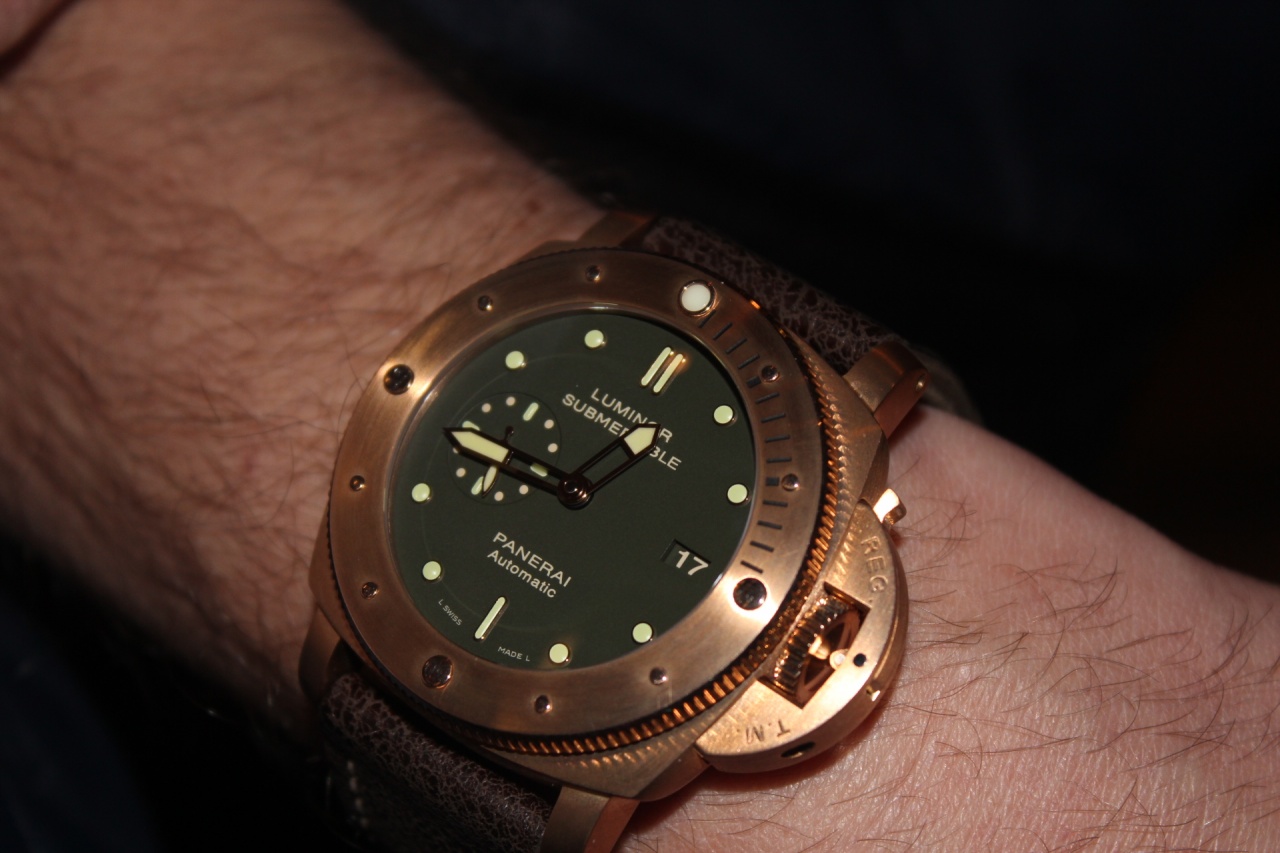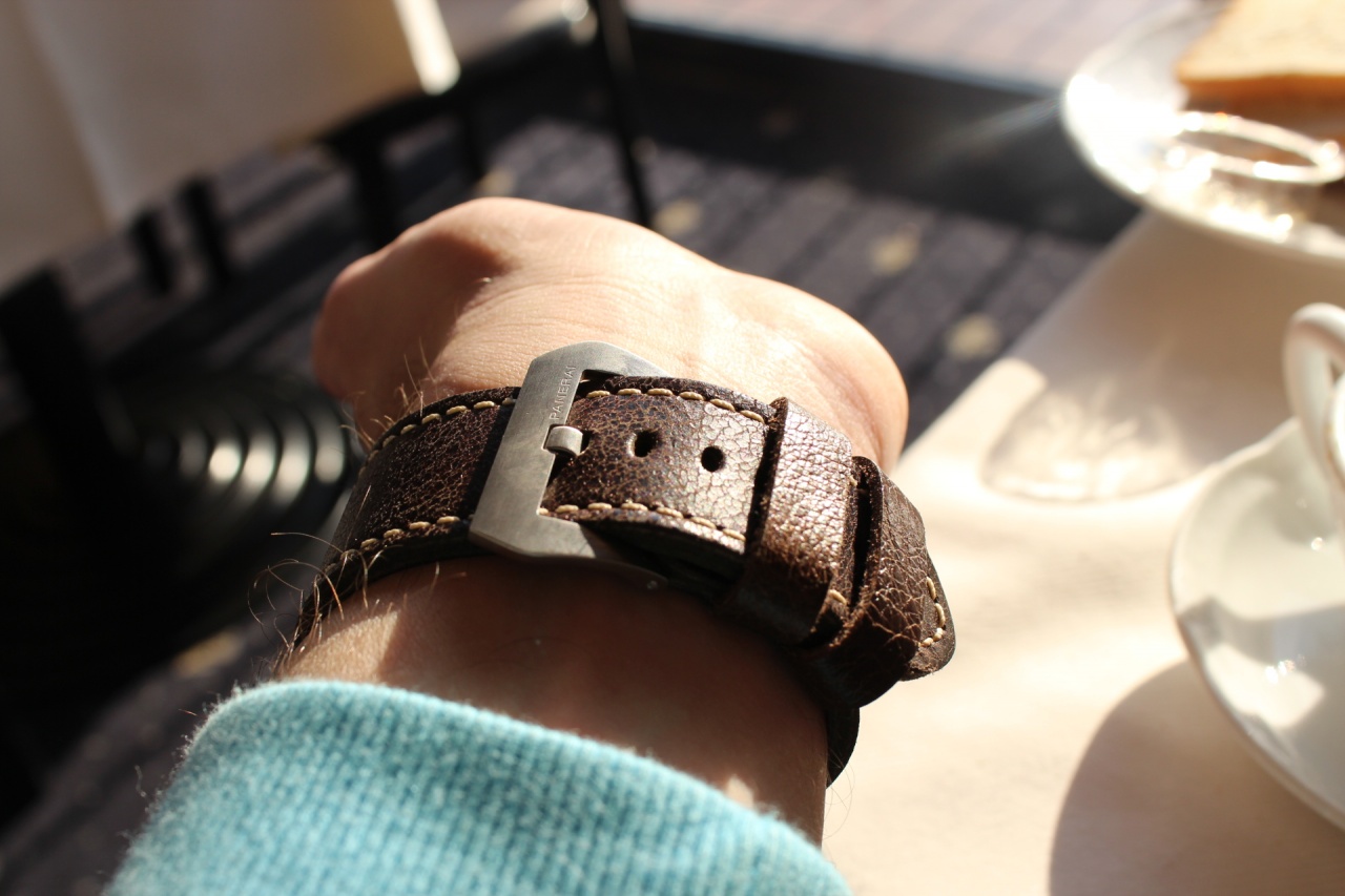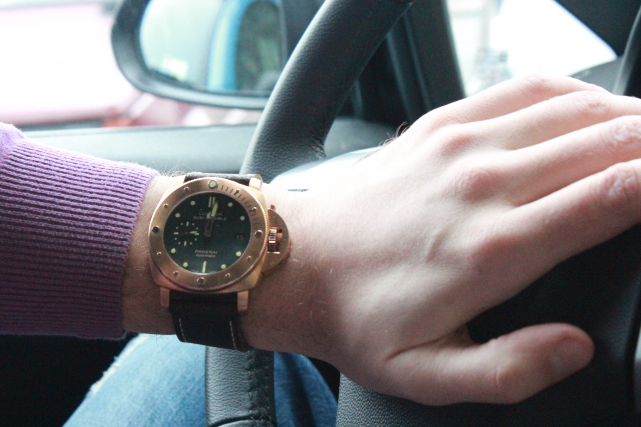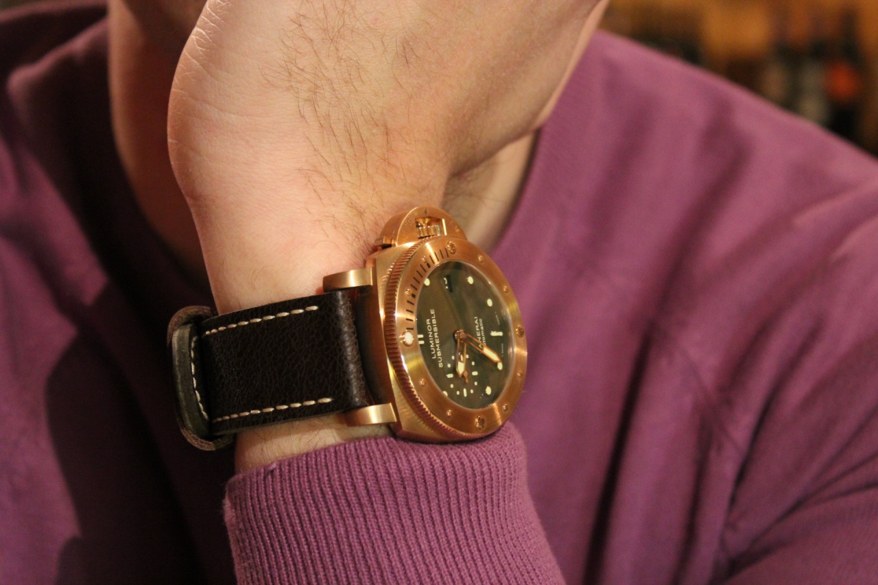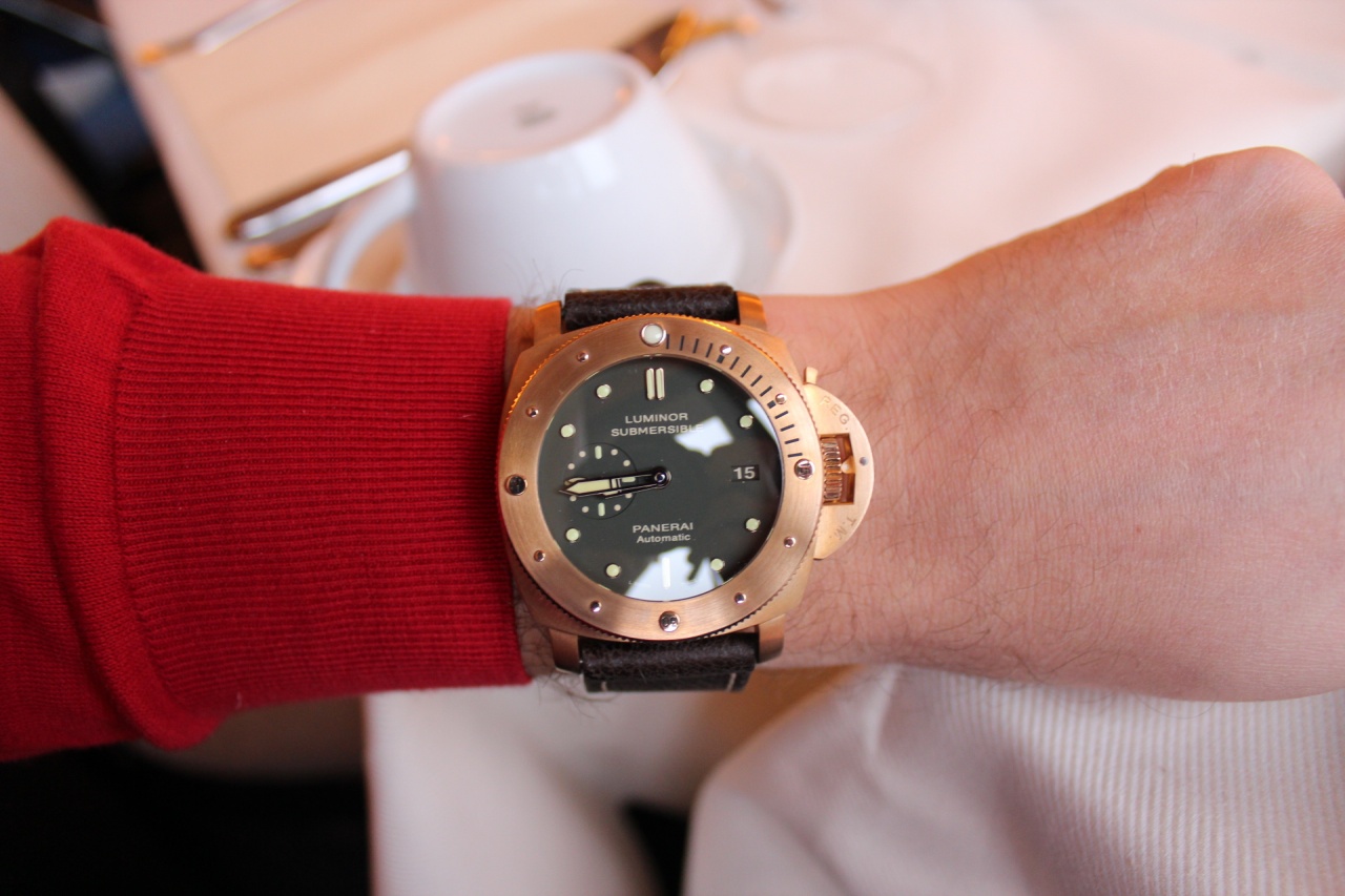 Действительно, 382-е (в Китае это сочетание цифр означает что-то вроде «жизнь полная богатства и процветания достижимого с легкостью», кстати, телефонный код Китая 68 – богатство и процветание, год основания марки panerai 1860 – дальше догадайтесь сами), судя по высказываниям на различных ресурсах, заметно разделили людей на пытающихся найти сто причин непрактичности данной модели и тех, кто был в восторге от нее, руководствуясь при этом полным отсутствием здравого смысла. Однако жизнь показала, что иррационалы (согласно соционике ими были и наш доблестный маршал Георгий Жуков и даже Наполеон Бонапарт) выиграли сражение. Даже законченный рационал сейчас бы не отказался прикупить данную модель по ритейлу:), но сейчас не об этом. Сейчас о том, насколько достойными, мужскими и утонченно стильными (в смысле точного соответствия определенному стилю, тематике, а не в смысле модными) получились эти часы. И я даже не буду ничего об этом писать и приводить разумные, обоснованные доводы. Лучше, просто, посмотрите сами. И да, они обязательно заржавеют:). С Паолой в бутике. Спасибо ей за брелок, книгу и футляр для часов, ну, и в первую очередь за часы, конечно. Вложение 221649Вложение 221648 Тем же вечером в гостинице. За рукой - Дуомо и Уффици. Во Флоренции желательно останавливаться на противоположном от Дуомо берегу, недалеко от Понте Векью или сразу за ним, поскольку с этой стороны реки лучше вид и больше приличных мест, где можно отметить покупку часов. На другом берегу вовсю господствуют законы тур. индустрии;). Вложение 221650Вложение 221651 Отмечание покупки. Фото, сделанное уже после поедания вкуснейшего bistecca fiorentina (мы даже не успели его сфотографировать:). За наводку по ресторану спасибо Денису, кому интересно это место - посмотрите подробнее на его сайте;). Кстати, для интересующихся могу дать пару-тройку подобных наводок по Флоренции и Риму, открытых в этот и предыдущие разы. Например, в 100 метрах от этого места расположен отличный двухзвездочный мишленовский ресторанчик Cammillo Trattoria. Деньги те же, еда немного поинтересней, не скажу вкуснее. Вложение 221652 Утром, в лучах зимнего тосканского солнца. Игра света на бронзе с учетом сложной формы часов просто завораживает. Вложение 221653 Вложение 221655Вложение 221654Вложение 221617 Вложение 221618 В дороге. Все правильно пишет Денис на своем сайте про Тоскану. Одно он упускает из виду, а именно то, что ничего так не сможет помочь понять и почувствовать это место, как передвижение на автомобиле. Это место просто напичкано старинными замками, виллами, горными лесами и серпантинами, разноцветными весной и присыпанными снегом зимой холмами, кипарисами, францисканскими монастырями, оливковыми рощами, виноградниками, горным воздухом, пропитанным ароматными травами, и прочим и прочим, чего никогда не увидеть и не осязать из окна поезда или оставаясь в пределах городских стен. А есть же еще придорожные закусочные на знаменитой дороге Кьянти, где черный петушок кричит вам на каждом шагу: «ну, выпей вина, ты же не дома, здесь нет треклятых гайцов:)». Вложение 221619Вложение 221628Вложение 221627 С купола Флорентийского Дуомо и внутри него. В Италии обязательно надо забраться, по крайней мере, на 5 высотных точек: купол Флорентийского Дуомо, сиенская башня Торре дель Манджа или смотровая стена в Сиенском Дуомо, Пизанская башня, купол собора Святого 