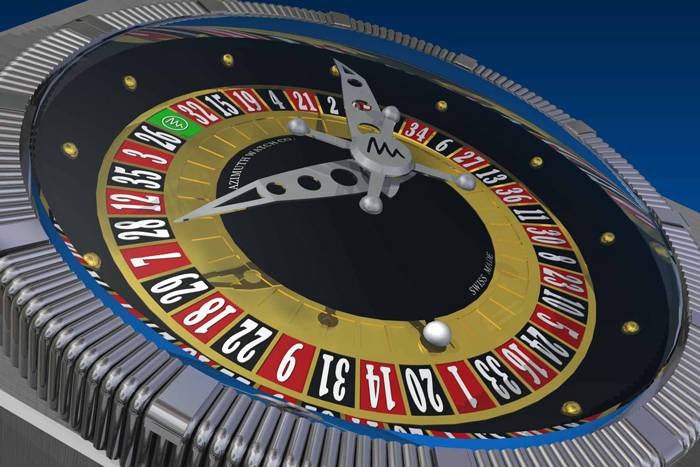 Наконец-то компания AZIMUTH нащупала удачную идею для «несерьезных» часов, которая воплотилась в SP-1 Roulette. Впрочем, идея далеко не новая. Объемный циферблат этих часов имитирует колесо рулетки, а заводная головка в виде игральной кости, помимо коррекции времени запускает шарик на стрелке, который совершает разное число оборотов и останавливается точно в произвольной ячейке.