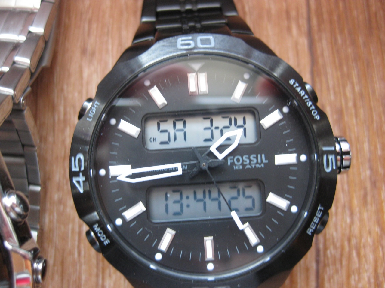 Приветствую всех! Хочу рассказать о своих Фоссил. Куплены они были в 2008 году. Я тогда о часах ничего не знал. Хотелось черные часы, с множеством циферблатиков. В магазине девушка сказала, что это называется Хронограф – нафиг он нужен был, я не понял, но мне он нужен был! :rolleyes: Благодаря этим часам я заболел часовой болезнью! Теперь о самих часах: ношу их довольно часто, но покрытие нигде не потерлось за 4 года. Есть еле заметные царапины на стекле – не сапфир всё-таки. Браслет не литой, но очень хорошо сделан, и волосы не дергает. Батарейку не менял с покупки. Из минусов: слабый люм. Светит час, и не очень интенсивно. В заключение скажу, что часами очень доволен, и они продолжают меня радовать. :)