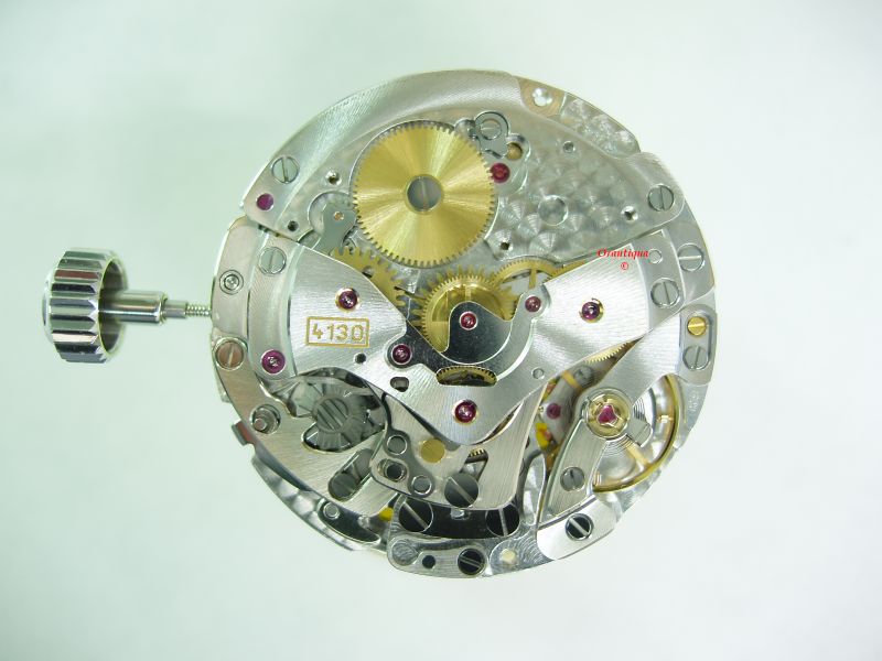 http://www.horology.ru/workshop/daytona.htm Следует заметить, что у него нет накладных камней-подпятников на цапфах анкерного колеса, как в 4130, видимо из-за особенностей конструкции их не удалось установить. Технически, же калибр 4030, он же модифицированный Zenith El Primero, представляет собой классический хронограф с колонным колесом и горизонтальным зацеплением, глядя на него, мысленно убрав узел автоподзавода, нельзя не заметить сходство компоновки с классическими хронографами с ручным заводом, такими как Venus 175. Калибр 4130, напротив, создавался с чистого листа, без оглядки на прошлые схемы. |
