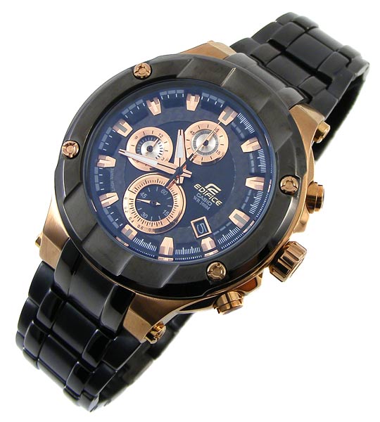 Наручные часы CASIO Edifice EFX-500BK-1A в вороненом стальном корпусе с сапфировым стеклом и литым браслетом.