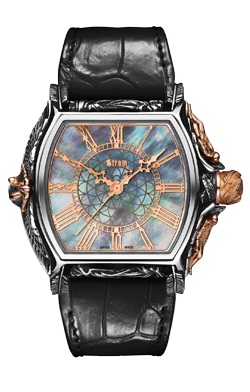 Корпуса изготовлены из серебра 925 пробы, или же из серебра и золота (18 К). Циферблат, из натурального перламутра. Все корпуса уникальны, ручная работа. Механика как обычно банальная - 2824-2. Цена, как обычно безбожная, 11 тысяч евро за серебро с золотом, и 10 тысяч евро за серебро. По материалам: http://www.strom-agonium.com/index.p...id=111&lang=en http://www.strom-agonium.com/index.p...id=111&lang=en |