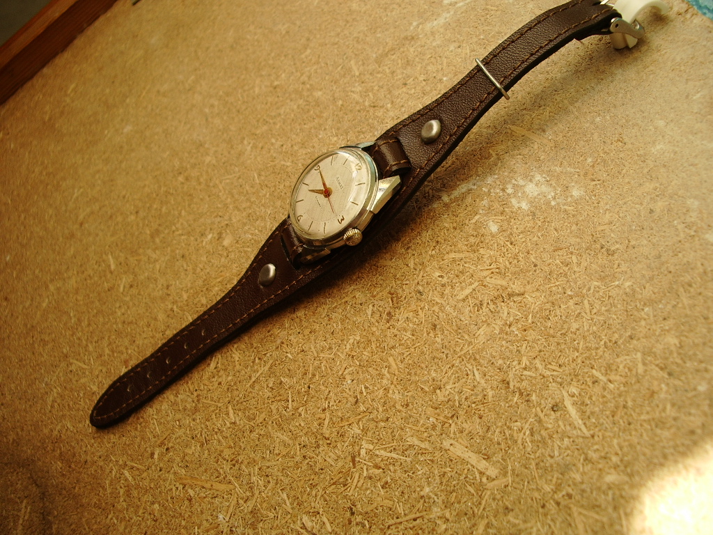 Часовая болезнь атаковала меня где-то в далеком 97 году, когда увидел сиротливо лежащие в шкафу отцовские Командирские. С тех пор прошло много времени, много часов появилось в коллекции(и те самые Командирские занимают в ней особое место), но меня всегда тормозил вопрос подбора ремешка/браслета. Особенно к часам 50-70 годов. И если с браслетом более-менее понятно, то с ремешками есть два варианта - попытаться подобрать что-то из современного для очередного винтажа или сделать самому. Долгое время думал, решал, но в итоге окончательно не выбрал никакой... Довольно истории. Где-то в начале февраля попали ко мне в руки Юношеские, долго не мог подобрать к ним ремень. Решил экспериментировать. К этому отчасти меня сподвигла фраза Фрекен Бок, из советского мультфильма про Карлсона: "Ну чем я хуже?" Сказано-сделано: http://cs11489.userapi.com/u10155152...z_d6827e17.jpg Потом захотелось большего. Фото в следущих сообщениях - это то, что было сделано начиная с начала февраля 2012. На Ваш суд, однофорумчане! С уважением, Андрей |
