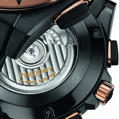 Что получится, если объединить броский дизайн и сдержанность классики, спортивный стиль и самые актуальные тренды часовой моды? Выйдет автоматический хронограф Moorea Triomphe от Pequignet. Триумф красно-черного тренда воплощен в красном золоте ободка и стальном черном корпусе актуального размера 44 мм, динамичном контрасте темного циферблата из столь модного ныне карбона с красной разметкой счетчиков хронографа и секундной стрелкой. В этих же тонах выдержаны стрелки, метки и логотип ЕР в положении «12 часов». Завершенность полету дизайнерской мысли придает черный каучуковый ремешок с красно-золотыми вставками овальной формы и раскладной двусторонней застежкой из нержавеющей стали с черным PVD-покрытием.