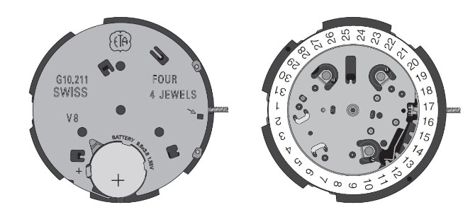 Его отличительные особенности: огромное количество пластиковых деталей и неремонтопригодность. А вот и внешний вид оригинального ETA G10.211: Вложение 278009 |