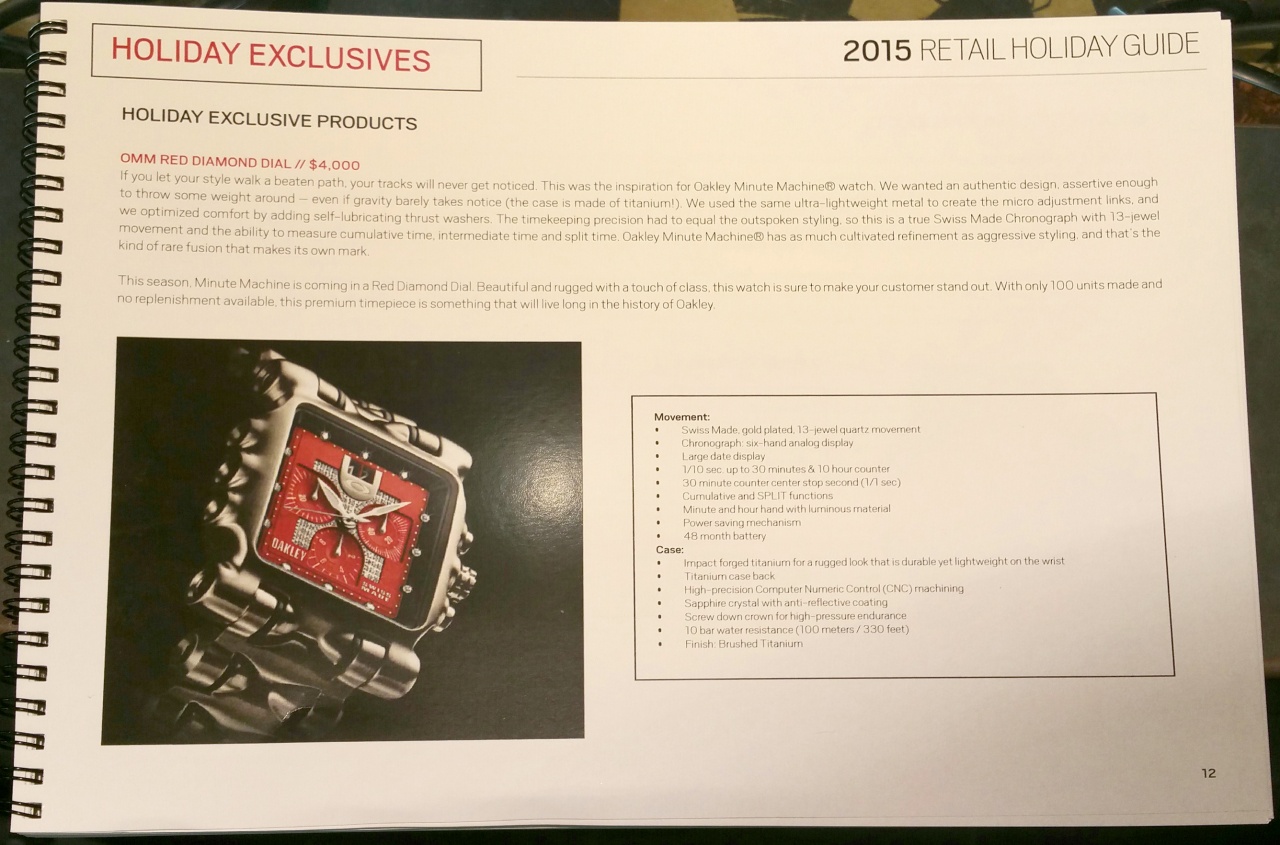 в декабре 2015 выпустили OAKLEY 2015 Minute Machine Diamond Holiday, выпустили 100шт по $4000, спекулянты продают $4500-$7500