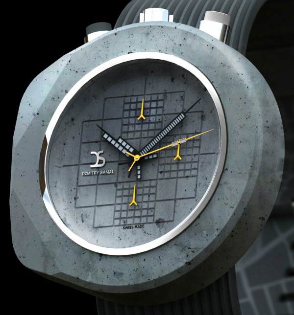 Уникальный дизайн его новой коллекции отражает влияние на творчество дизайнера как жизни в большом городе, так и культуры поп-арта. Это первые часы с корпусами из настоящего бетона. Дмитрий Самаль выбрал этот вдохновленный мегаполисом материал и запатентовал абсолютно новый способ обработки и полировки бетона. Корпусы из бетона выполнены в двух формах, внутренняя часть корпуса – из стали. Корпуса обеих версий с разной формой составляют 42 мм в диаметре и комплектуются резиновыми ремешками.