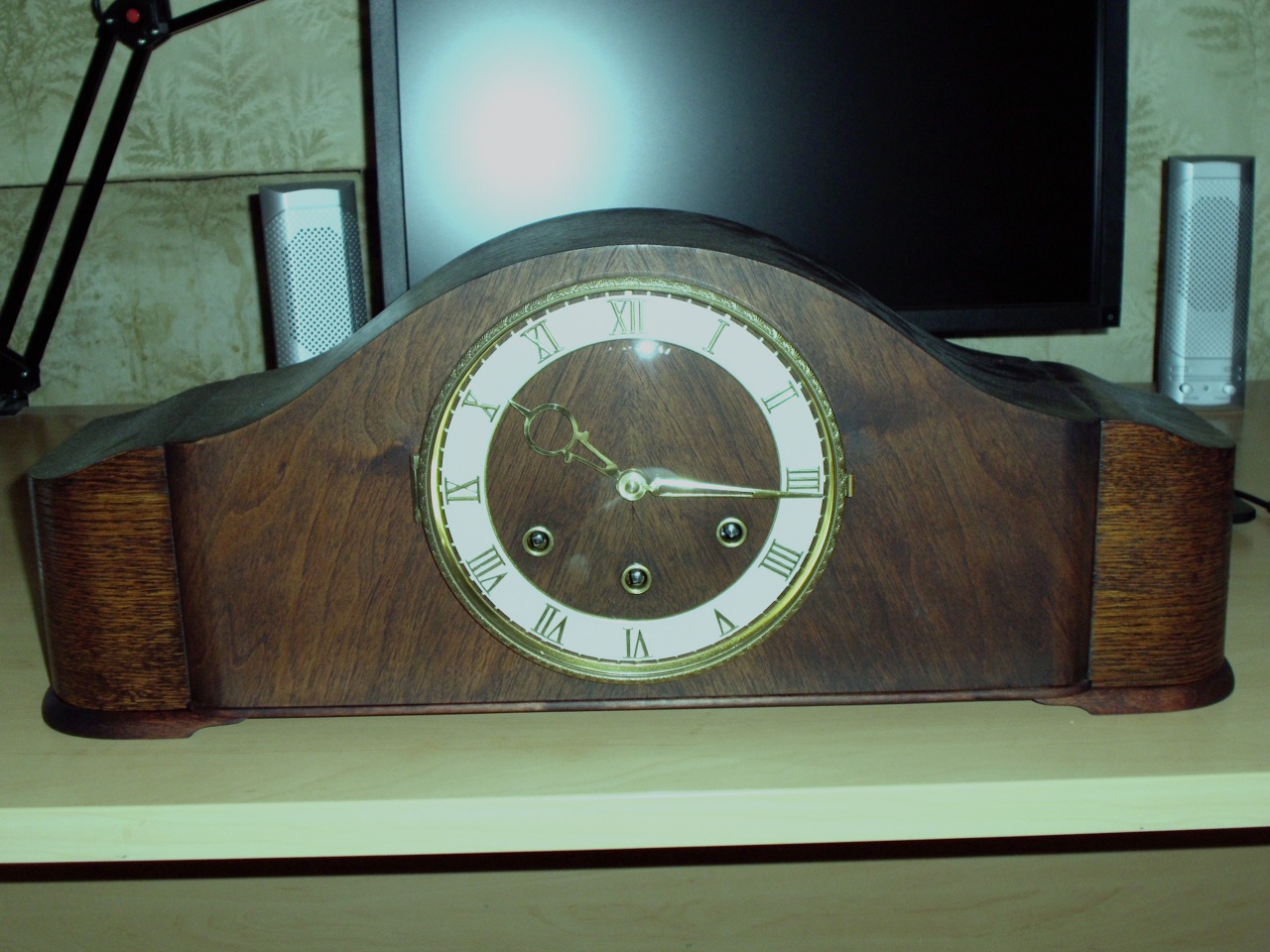 Поздравляю от всей души! Изумительнейшие часы и выглядят так - по старинному. У меня в почти точно таком же корпусе, правда с резными накладными завитушками, немецкие 1938 года. Красивый бой, но не Вестминстер. А Вестминстер есть в английском исполнении и корпусе - 1942 года. Бой!!! Я так вас понимаю...