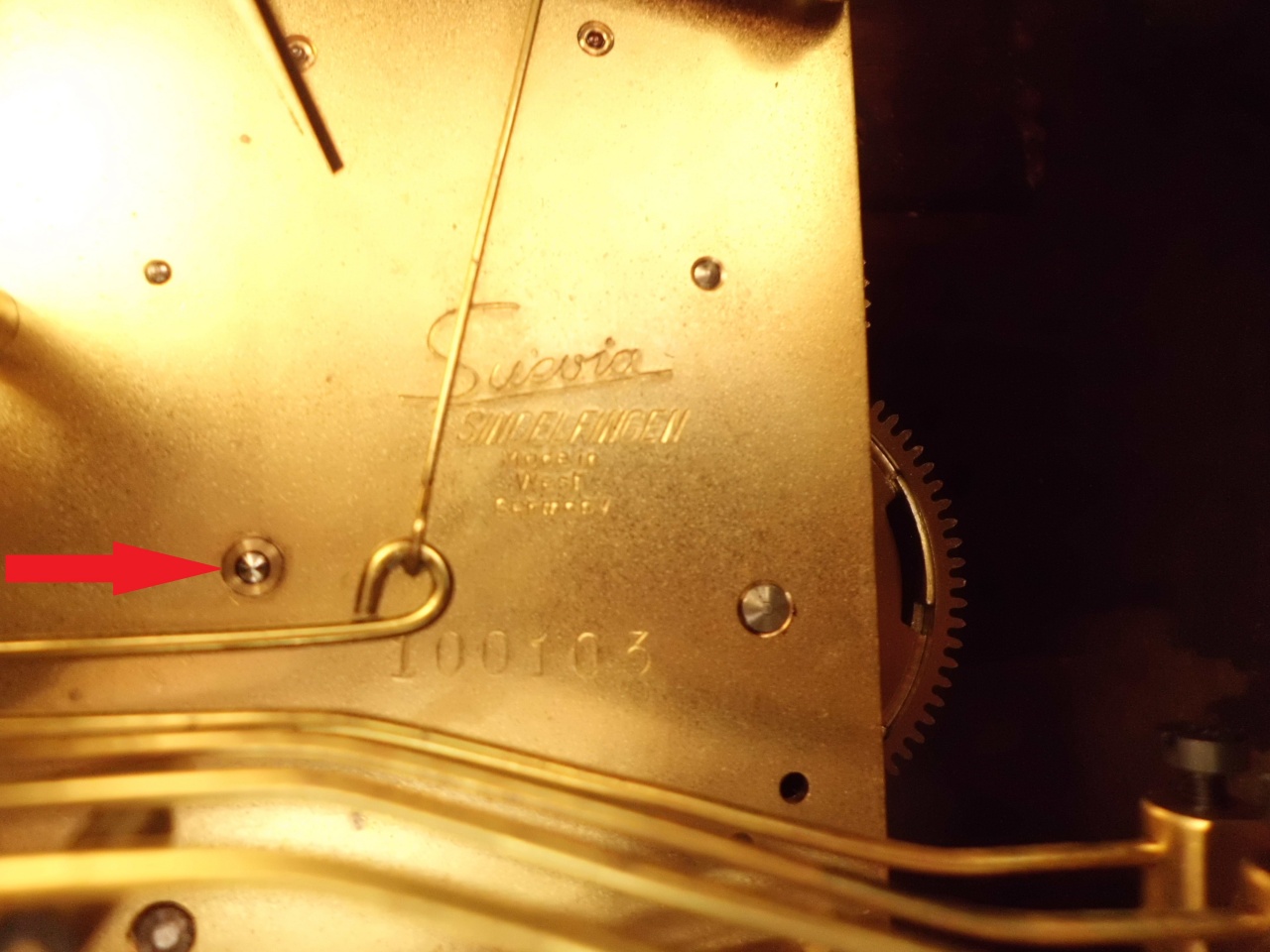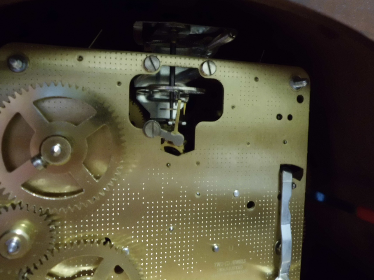 Механизм выпущен немецкой фабрикой Suevia из города Sindelfingen, судя по надписи West Germany - примерно 50-60-е годы. Логотип на корпусе - "Ankeruhr", не сохранился, так как был нанесен на слой лака. Часы были куплены мной на киевском слете в нерабочем, но ремонтопригодном состоянии. Старый лак на передней панели растрескался, поэтому я снял его при помощи смывки для краски и шпателя, далее зачистил лицевую панель и загнутые боковины лезвием и мелкой наждачкой и покрыл морилкой, которая кроме цвета образует также тонкое защитное покрытие. Механизм был полностью перебран, к сожалению, до меня там ковырялся один "мастер" - было погнуто две цапфы, на шейке заводного вала остались отметины от плоскогубцев, но все удалось исправить, износ совсем небольшой или совсем отсутствует, потребовалось поставить только один футор - для цапфы недельного колеса хода в задней платине. Вложение 292081 Весьма интересна конструкция барабанов - зубчатое колесо с помощью байонетного крепления соединяется с корпусом барабана. Ход часов выполнен в виде отсоединяемого модуля, штифтовый спуск, ось баланса вращается в двух конусных камнях. Рычажок, помеченный красной краской, служит для перевода часов в "тихий режим" - он приподнимает 4 молоточка боя четверти, при этом игральный барабан просто крутится вхолостую, то есть часы не играют четверти, только негромко отбивают количество часов пятым молоточком. фото Вложение 292084Вложение 292121Вложение 292086 Вложение 292087Вложение 292088Вложение 292089 Вложение 292090Вложение 292091Вложение 292092 Вложение 292093Вложение 292094Вложение 292095 Вложение 292096Вложение 292097Вложение 292103 ссылка на видео http://www.youtube.com/watch?v=Zd3fA...ature=youtu.be |