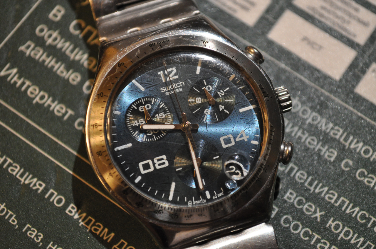 Вложение 303865 Вложение 303866 Вложение 303867 Вложение 303868 C ними не только плавал, но и регулярно в душ ходил и в сауну (часам ведь тоже нужна чистота:)). Да и в баньку при 120 градусах пару раз случалось. Часам ничего не было. Со временем стерся безель со шкалой тахиметра, нарисованной сверху, жутко царапалось дешевенькое минеральное стекло, появлялись засечки на корпусе, но точность хода не делась никуда. ИМХО убить эти часы можно только молотком. |