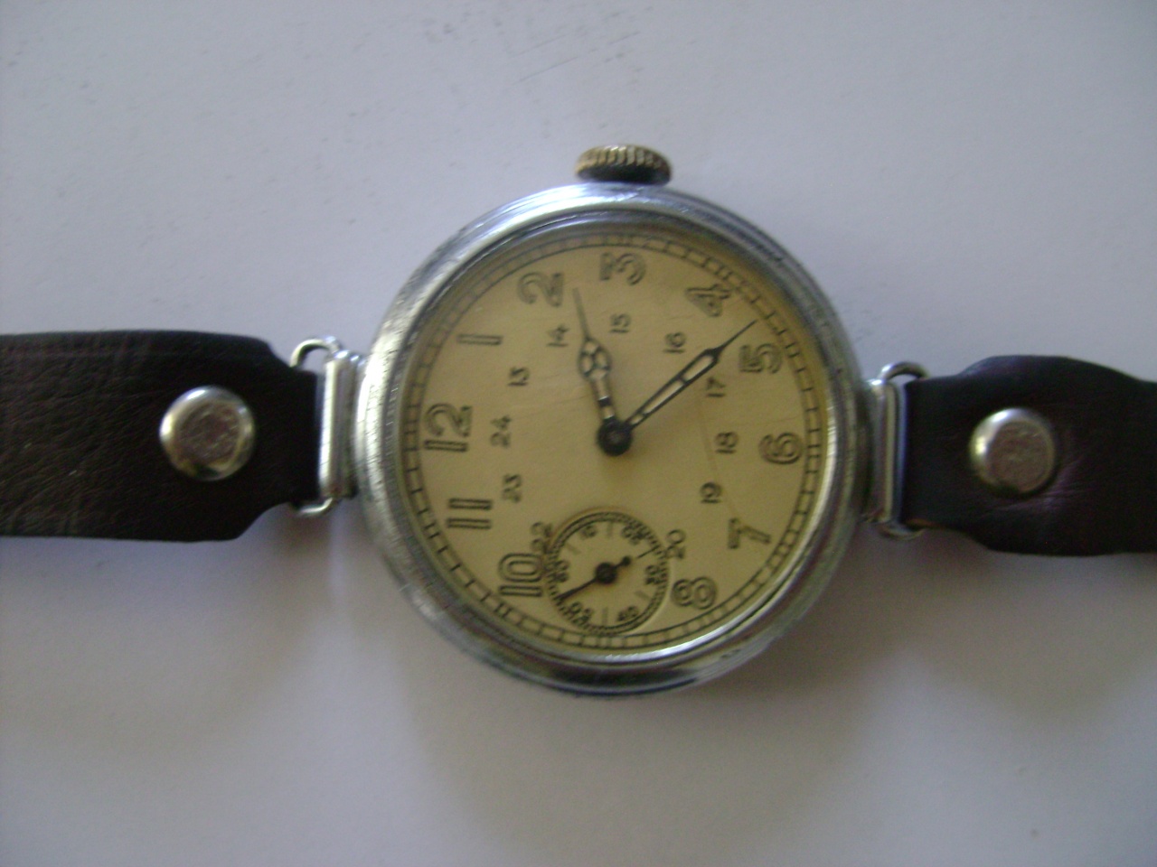 По годам примерно времен ВОВ . Точнее можно посмотреть на механизме , заодно и узнать какой часовой завод -- открываются они очень легко , без спец инструмента -- к примеру ножичком . Тема про подобные часы : http://forum.watch.ru/showthread.php?t=6267 |