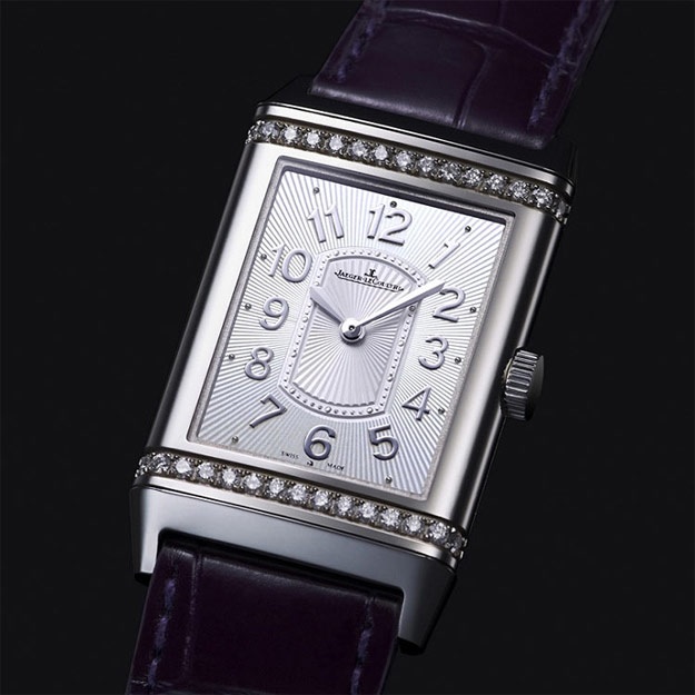Такие бы: Jaeger-LeCoultre Grande Reverso Lady Ultra Thin. В классическом переворачивающемся корпусе 55х35 мм из белого золота, украшенном бриллиантами, содержится калибр 846 с ручным подзаводом. Часы весьма просты (всего две стрелки), но благодаря изысканно декорированному циферблату весьма красивы и интересны. |