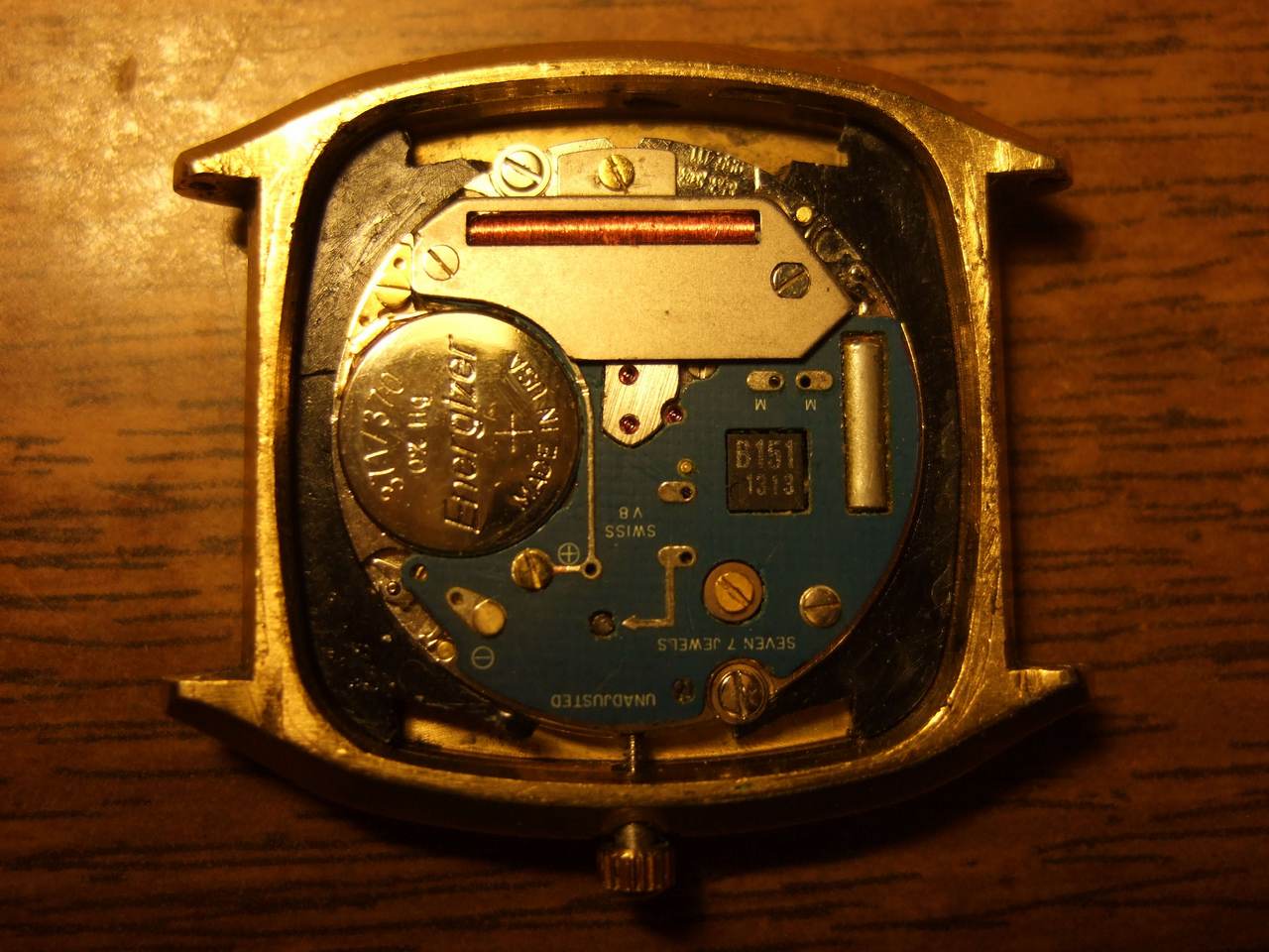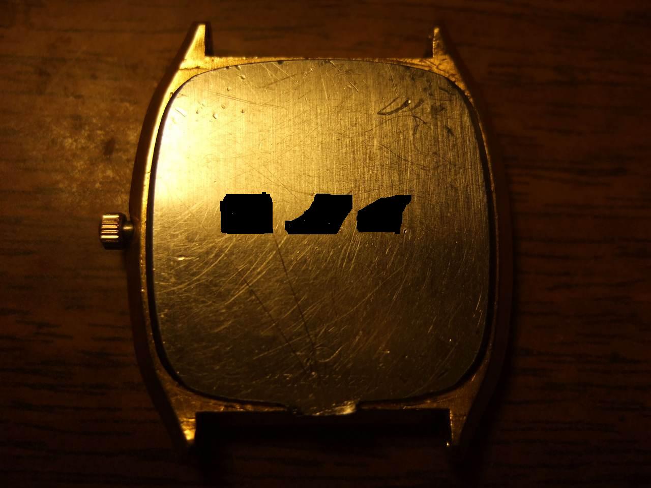 Задняя крышка стальная, но на корпусе (между душками) нечеткое клеймо... возможно что корпус и вправду (когда то) был позолочен, но и это ничего не стоит:( Ремешок подбирайте не по модели (просто очень дорого оригинал), а по размеру между душками. |