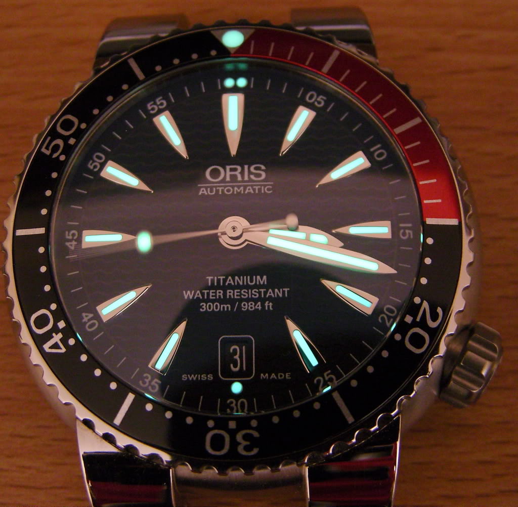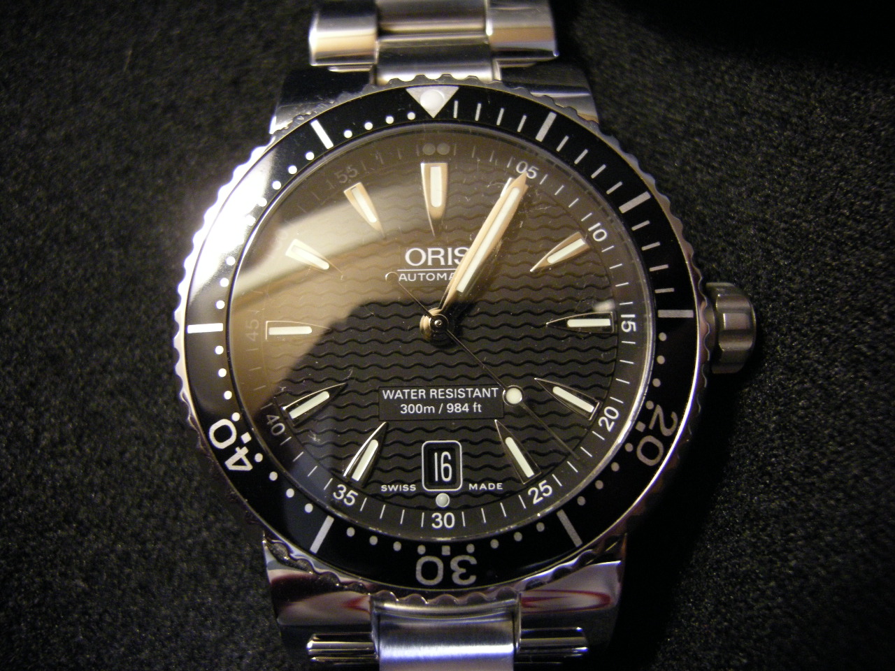 Здравствуйте, дорогие единомышленники! Вот и я примкнул к вашим рядам и теперь с гордостью зовусь Орисоводом :) Прилетели фром Юнайтед Стэйтс мои швейцарцы, и по такому случаю решил я написать здесь свой скромный отчет и некоторые предостережения желающим совершить покупку. Однако об этом позже, а пока предлагаю ознакомиться с воплощением суперпрофессионализма и предела совершенства фотографии. Уж не сочтите за оскорбление достоинства сего чудного сообщества мою невзрачную презентацию. Тем более, что подобная с данной моделью уже была проведена пользователем Werdna в теме "Первый Дайвер (ORIS TT1 DIVERS DATE)" на значительно более высоком уровне. Граждане, слово даю, ну не держу я фотоаппарата чаще раза в год в руках, отсюда и низкое качество с нелепыми ракурсами.