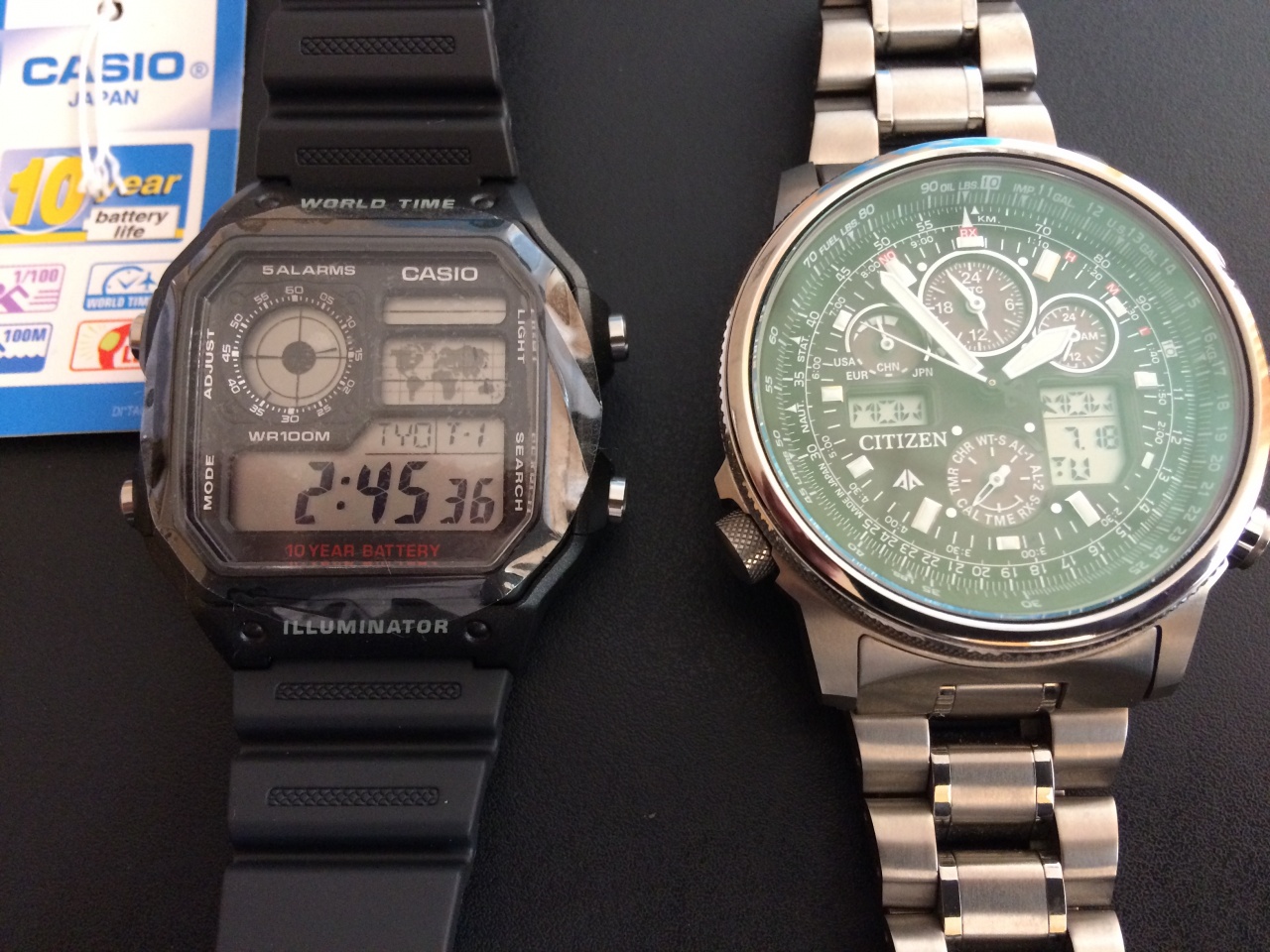 Заказал на Ebay у lelongwatch в качестве подарка. Часы пришли без коробки. Часы понравились, да еще и за полторы тысчи. Особенно впечатлил ремешок: мягкий и приятный. Корпус не маленький и не толстый. Часы легкие, на моей руке удобны. Кнопки выпирают и их удобно нажимать. Последнее фото в сравнении с часами 44 мм.