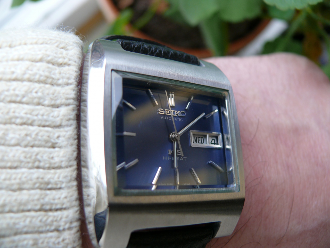 Уважаемые форумчане , спешу поделится радостью , давно мечтал о винтажных KING SEIKO . Блуждая по маркету случайно увидел и дыхание перехватило , все что я хотел и в одном флаконе , сине-голубой циферблат , полированные стрелки и метки , легендарный 5626а - в свое время Японский прорыв в механические ворота швейцарии , день недели и число , ручной и автоматические заводы, сатинированный корпус , уххх. Точность хода пока не сверял . Ну вообщем то пока только эмоции и фото .
