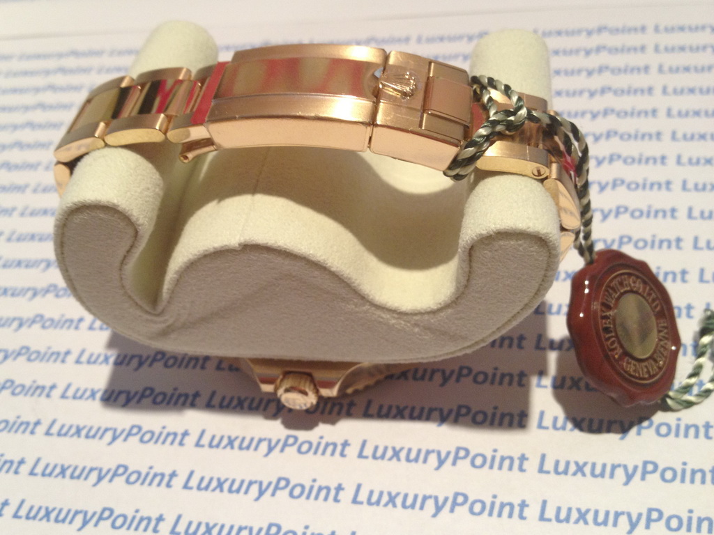Совершенно новые, в плёнках, часы с полным комплектом упаковки, документов и международной гарантией официального дилера Rolex. Цена - €19500. |