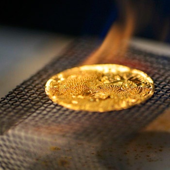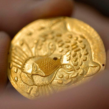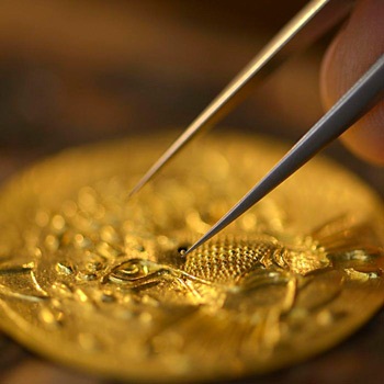 Чтобы достичь необходимого эффекта, мастера вручную кропотливо собирает рисунок из крошечных шариков из 22К золота. Такая техника называется этрусская грануляция или зерни. Суть метода заключается в том, что поверхность золота покрывается микроскопичными золотыми сферами, при виде которых создается эффект их невероятной воздушности. Основная сложность состоит в том, чтобы прикрепляя эти сферы не деформировать основную поверхность.