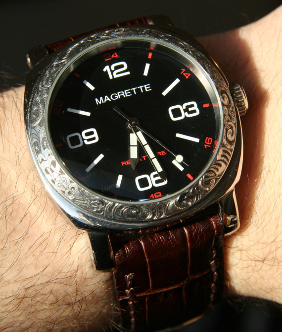MAGRETTE: KUPE'S VOYAGE Кто из вас, слышал что либо о респектабельных наручных часах из…. из Новой Зеландии? Наверно для многих это будет сюрпризом, но в Новой Зеландии существует крохотная мануфактура, выпускающая стильные и элегантные наручные часы ограниченными сериями. История этой мануфактуры берет свое начало совсем недавно примерно с 90х. Рождение бренда произошло по инициативе талантливого молодого человека Диона Мак Эйси (Dion Wynyard McAsey). Дион с детства был одержим часами, в юные годы он собрал довольно внушительную коллекцию наручных часов, времен второй мировой войны, он мог подолгу, по несколько часов кряду, погружаться в мир часов, изучать историю конкретного часового механизма, хронологию выпуска модели, пытаться наладить контакт с такими же энтузиастами и любителями часовой истории во всех уголках земного шара, а его младший брат в возрасте семь лет, случалось, одевал по шесть пар часов на руки, пытаясь их все синхронизировать. Впоследствии, одна из первых серий, выпущенных Дионом, была посвящена как дань брату Маркусу, погибшему в возрасте тридцати одного года… Рождение имени MAGRETTE В то время Дион работал директором одного креативного агентства, специализирующемся на часовом рынке, и однажды он задумался, почему бы не наладить производство собственных часов, несущих собственную философию и понимание часовой эстетики, такой как виделась Диону – мощенные булыжные мостовые, горожане в черных итальянских сюртуках и белых рубахах, магическое притяжение средиземноморья, и тайны старого света… и одновременно соблазнительная простота, настолько, что эти часы будут стильными даже во времена, когда их будут носить наши правнуки… так родилась MAGRETTE. Вложение 48765 (Примечание: Вообще, в дизайне и концепции часов марки MAGRETTE прослеживаются характерные часы итальянского дизайна, легко угадываются элегантные черты Panerai или Marina Militare, но вот в конце 90х, во Флоренции появляется достаточно известный, в наше время, брэнд Anonimo, который основал Фэдерико Масачеси, долгое время до этого работающий с Сальваторе Феррагамо, и с первых же серий выпусков миру были представлены новинки, исключительно стильные и элегантные в духе Marina Militare и как две капли воды напоминающие мне дизайн MAGRETTE) Модель KUPE’S VOYAGE Вложение 48766 Это ограниченная модель (часов в серии всего 10шт), в основу которой положена, какая то туманная легенда о погоне за гигантским осьминогом в результате которой, была открыта Новая Зеландия. Как бы там не было, часы действительно привлекают своей соблазнительной простотой и в то же время завораживают своей таинственностью. Вложение 48767 Ручная гравировка на корпусе и задней крышке. Когда я увидел эту надпись, я сразу проникся духом приключений на просторах фантастически прекрасных пейзажей и панорам Новой Зеландии. Если вы смотрели "Властелин Колец", неизбежны еле уловимые ассоциации, не так ли? Вложение 48768 Все часы поставляются в высококачественной шкатулке ручной работы из дикого дерева Kauri, с выгравированным на ней логотипом и искусной инкрустацией. Внутри шкатулка покрыта натуральной бархатной кожей местного производства. Вложение 48769 Спецификация: Модель: Kupe’s Voyage Калибр/Механизм: Swiss ETA 2824 запас хода 40 часов Корпус: 44мм, полированная нержавеющая сталь Безель: Ручная гравировка Заводная головка: Завинчиваемая Кристал: Сапфир минерал