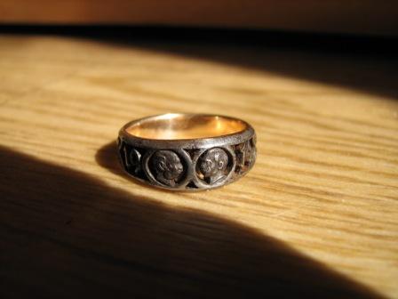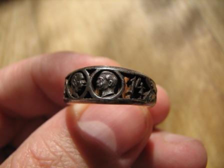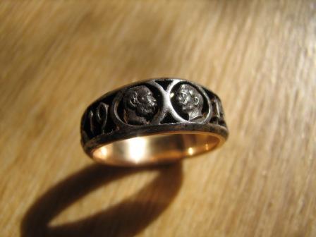 Уважаемые форумчане. Продается биметаллическое кольцо, изготовленное в 1914 году. Состоит из двух впаяных одно в другое колец. Внутреннее из 14-каратного красного золота, а наружное из железа с портретами немецкого кайзера Вильгельма II и Франца-Иосифа, кайзера Австро-Венгрии. Портреты весьма тонкой работы. Скорее всего, данное кольцо изготовлено в честь заключения ими союзного договора накануне Первой Мировой войны. Это модное колечко того времени, изготовленное в Австро-Венгрии.