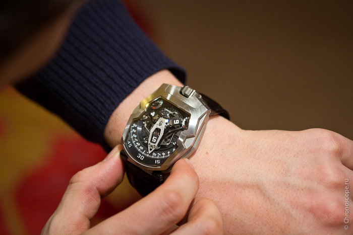 Совершенно не привлекая к себе внимания, втайне от глянцевой прессы, глава Urwerk Феликс Баумгартнер посетил в декабре замерзшую Москву. Корреспондентам журнала Chronoscope удалось встретиться с ним в потайной комнате одного из бутиков Третьяковского проезда. Этот парень в майке позволил примерить и сфотографировать волшебные часы UR-210 Maltese Falcon [см. об этой модели здесь. Ego], появление которых для нас лично стало одной из главных новостей 2012 года.