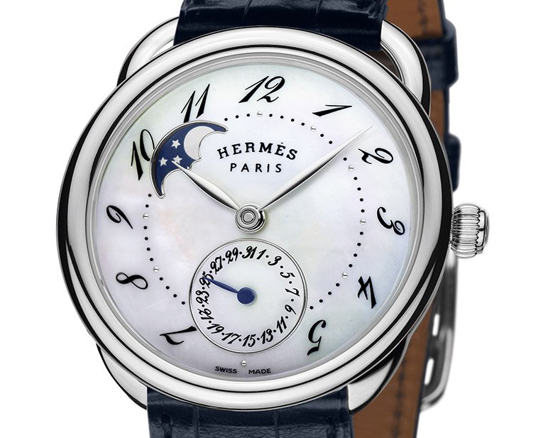 Французский Дом высокой моды HERMÈS представил свою новую модель Arceau Petite Lune. Она выпускается в двух вариантах: с перламутровым циферблатом серебристого цвета и с перламутровым циферблатом черного цвета.
