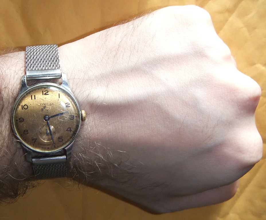 Вложение 395862 Мне эти часы дедушка когда-то подарил. Интересная вещь в коллекции, но не на каждый день. Часы совсем маленькие 32 мм/34 с ЗГ, 9 мм толщина, ремешок на 16 мм. На руке выглядят совсем мелкими. Корпус –латунь с покрытием. Механизм надежен и неприхотлив, но требует регулярного обслуживания. Водозащиты никакой, часы нужно беречь даже от небольшого дождя, протекают моментально и останавливаются. Часы, конечно, с историей. Но это история чужого человека. Оно Вам нужно? Я думаю, что такие часы нужно носить только как память о дорогом человеке (дедушка или прадедушка). Покупать для ежедневного ношения эти старые не представляющие особого коллекционного интереса часы явно не стоит. Можно купить примерно за 5 – 10$ для коллекции. Имхо, больше 10$ за них отдавать не стоит. ------------------------------------ Я бы взял на каждый день ORIENT FER24004B. http://www.marata9.ru/uploads/catalo...553bc1_big.jpg Совсем недорого, надежная японская механика, классический дизайн. |