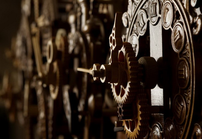 Вначале Андрей Мартынюк старался копировать металлические механизм, но вскоре понял, что добиться точного времени в таком случае невозможно. Во-первых, дерево – более мягкий материал, чем металл, а, во-вторых, влажность портит детали. В результате кропотливой работы мастер научился делать часовые механизмы, размеры зубьев шестерен которых значительно больше традиционных аналогов, кроме того, он пропитывает древесину специальным раствором, который делает ее более устойчивой к влажности.
