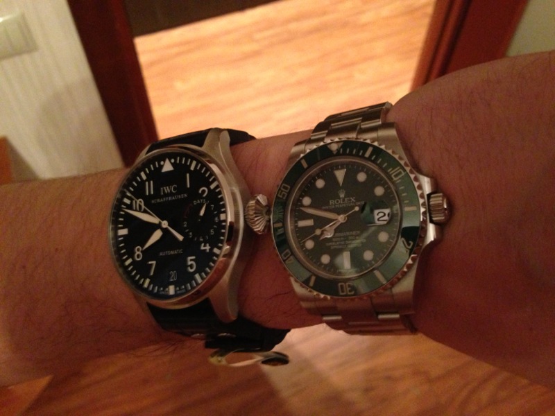Давно хотел их купить, но все как-то не до IWC BP было мне)) и вроде успел приобщиться к IWC стальным вечником Курта, а о "Больших пилотах" все равно постоянно думал и вот недавно знакомый попросил меня промониторить маркет форума по наличию в продаже БП и "розыскиваемый" ))) был найден в предложении Ильи (Лаврентиус) , а дальше встреча, покупка, "случайная примерка"))) и звонок другу: "Нашел часы, но извини я их оставил себе". ;) В первый вечер обмываем покупку с женой в ресторане: Вложение 403387 Просто пару фото: Вложение 403389 Вложение 403390 Рядом с Халком зачем то сфотал:) Вложение 403396 |