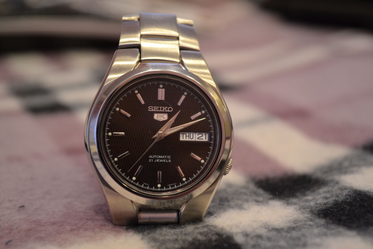 Характеристики: Механизм: 7S26B (21 Jewels) Механика с автоподзаводом. Корпус: нержавеющая сталь. Браслет: нержавеющая сталь. Размер: 38мм. Функции: Дата, День недели. Люминесцентные стрелки и маркеры времени. Прозрачная задняя крышка. Цена: 2500р. Носил их всего пару раз. Так что можно сказать что состояние отличное. |