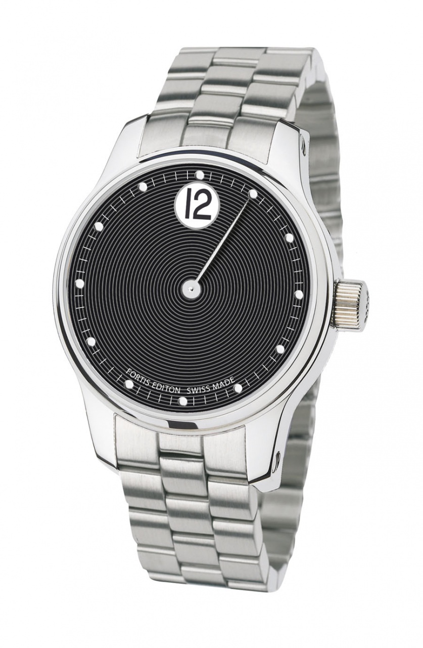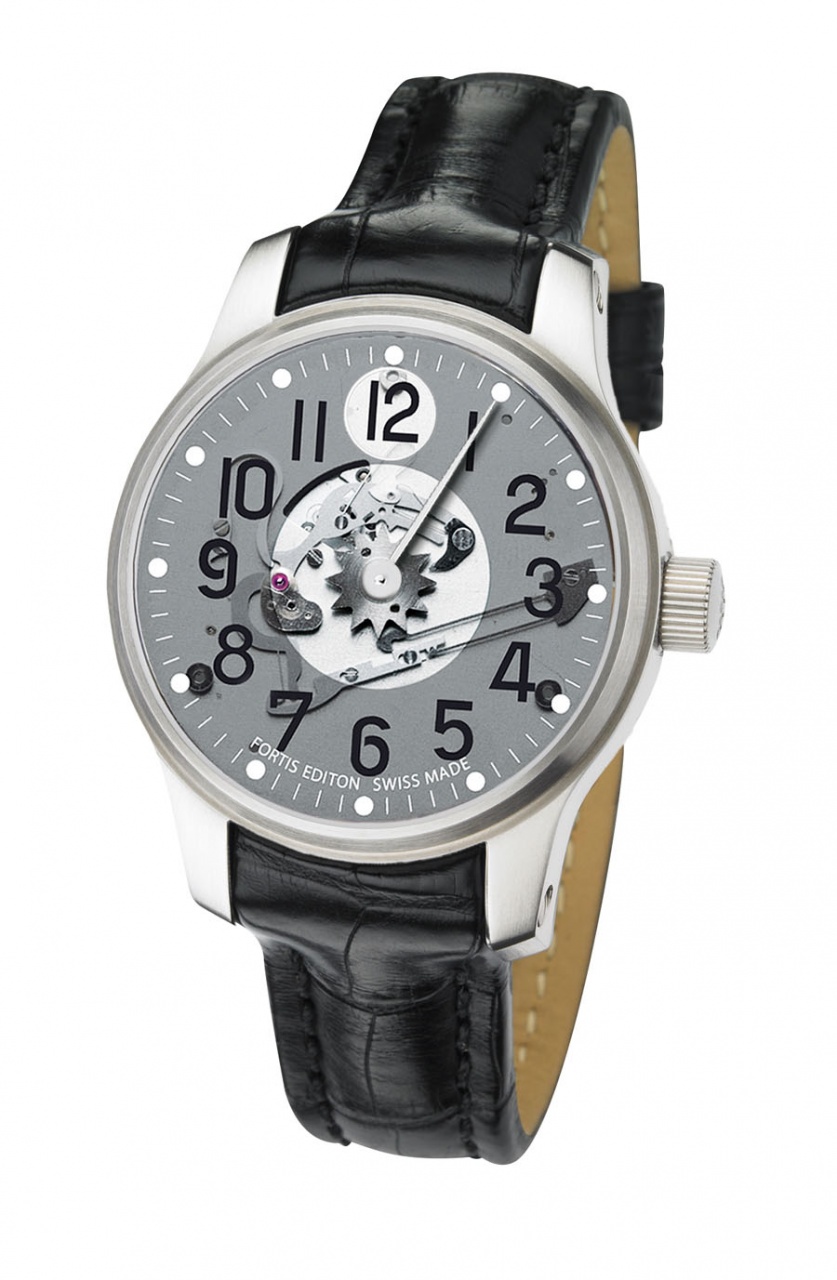 Круглый корпус из нержавеющей стали, водонепроницаемый до 200 метров. Рифленая завинчивающаяся заводная головка, с логотипом бренда на ее торце, расположена на 3 часах. Сапфировое стекло защищает циферблат черного цвета с гравированными концентрическими кругами или прозрачный циферблат, сквозь который просматривается передняя сторона калибра. Модель оснащена швейцарским автоматическим механизмом Fortis F2024 (базовый калибр ETA 2892-A2), с функциями индикации часов (посредством "прыгающего" цифрового указателя в круглой апертуре, расположенной на 12 часах) и минут (посредством соответствующей центральной стрелки).