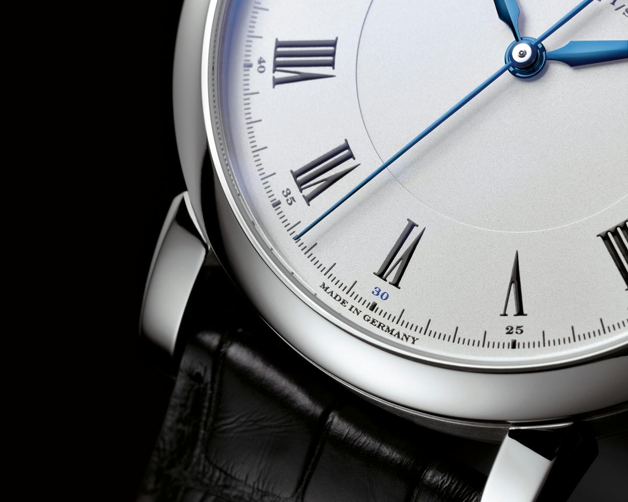 Модель оснащена мануфактурным немецким механизмом с ручным заводом A. Lange & Sohne L041.2, собранным вручную, на 26 камнях, с балансовой частотой 21600 полуколебаний в час (3 гц), запасом хода 38 часов, функциями индикации часов, минут, секунд (посредством соответствующих центральных стрелок). Калибр оснащен балансовой пружиной собственного производства, отделан и декорирован в полном соответствии с саксонскими канонами Glashütte и требованиями Haute Horlogerie. Настройка точности хода произведена в пяти положениях.