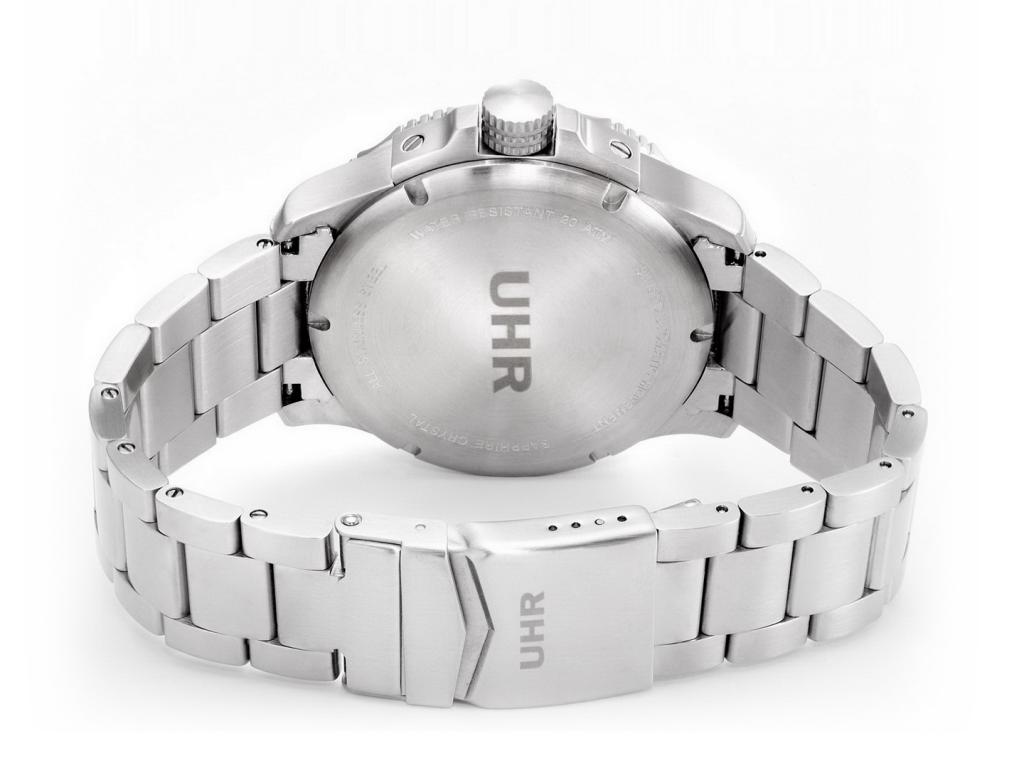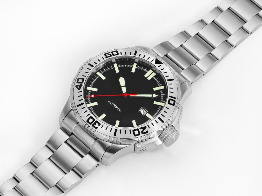 Среди подобных «модников» — пополнение: дайверы UHR442 от часового производителя UHR von Uhren. Корпус часов диаметром 46 мм изготовлен из нержавеющей стали. Расстояние от ушка до ушка – 53,5 мм, а толщина – 14 мм. Черный циферблат с люминесцентными стрелками и маркерами защищен сапфировым стеклом. На циферблате – апертура даты на показателе трех часов. Интересно то, что помимо слова «Автоматические» на показателе 6 часов, на циферблате отсутствуют какие-либо другие надписи или логотипы. Безель часов – однонаправленный, вращающийся. Водонепроницаемость дайверов – 200 м. Общий вес часов составляет 231 г. Часы оснащены достаточно распространенным механизмом швейцарского производства — ETA-2824. Комплектуются часы браслетом из нержавеющей стали с раскладной застежкой с надписью «UHR». Стоимость часов составит всего 349 евро: приличные дайверы по доступной цене! Вложение 416916Вложение 416917 Источник: http://watchpaper.ru/2013/04/uhr442-diver/ |
