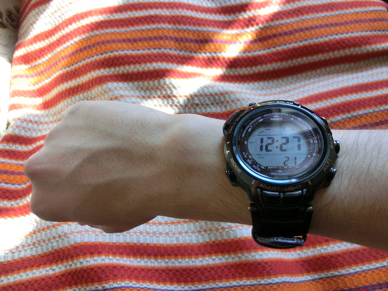 Как и обещал, небольшой обзор часов CASIO PRO TREK MANASLU PRX-2000LC-1JF. Для начала кулстори, как я их покупал. Это мой первый опыт покупки чего-либо за рубежом. Покупал у славного продавца cool-japan, безумно ему благодарен. За что - читайте дальше. :) Когда регался на ebay, paypal, адрес написал кириллицей, а в случае и с PayPal еще и имя. А узнал, что это плохо уже после того, как оплатил айтем. Чувствуете, да, начало истории :) Мотивировал я это тем, что адрес-то пишется для руссийских почтальонов, а они по-буржуйски не бельме. Оказалось, что транслит таки годится. Но всё обошлось. Посылка пришла,на ней была наклеена бумажка с распечатанными ФИО и адресом. Доставка была через EMS. Об этой конторе впечатления можно выразить след. фразой: "Хорошо то, что хорошо кончается". Так или иначе, доверять им можно. 26 марта облатил заказ на ebay, Далее пришло пару e-mail уведомлений от продавца. 28 марта в 14:17 отправлено (в треке "Операция - Прием"), в 21:03 уже был экспорт из Японии. 30 марта импорт в Россию. Выходит, что экспорт-импорт - всего два дня. В тот же день отправление было передано таможне на сутки. 01 апреля посылка прибыла в место вручения. Дальше - самое интересное, а именно - получить. 02 апреля - "Неудачная попытка вручения, По техническим причинам". Тут я решил, что лучше не связываться с курьерской службой т.к. график моей работы сложный, и позвонил в единую справочную службу EMS. Попросил переадресовать посылку в пункт выдачи на ул. Мясницкая. Подтверждение получил, услышал сроки: 04 апреля после 10:00 (пункт выдачи круглосуточный). Приехал я туда 4-го апреля часам к 12, сутрудники оказались вежливыми, общаться было приятно. Далее сообщили, что у них пропал доступ к базе данных и айтишники занимаются восстановлением. Сроки - от 30 минут до 4 часов корочеприезжайквосьми-девяти. Оккееей :D Вернулся туда спустя полтора часа, доступ к базам восстановили, сказали, что отправление не у них, а, как они выразились, "на северной базе". Уточнил адрес: Керамический проезд, д. 53. Стало мне не шибко весело, позвонил в единую справочную службу EMS, спросил, имеет ли мне вообще смысл туда ехать и выдадут ли мне посылку. Ответили, что нет, и что ждать ее нужно будет на Мясницкой, и что сообщат еще раз на Керамический проезд, куда именно везти посылку. Сказали ждать звонка. Но я упёртый :) Таки поехал на Керамический проезд. У входа несколько машин EMS, ведется разгрузка-загрузка. У входа охранник. Он и помог мне найти посылку :) Если честно, то даже не надеялся на успешный исход сего мероприятия. Трек доставляет по сей момент, а вот и он: Вложение 419221 Ну теперь о часах :) Сказать, что доволен - ничего не сказать. Не так давно у меня четко сформировались требования к часам: сапфировое стекло, читаемый циферблат/дисплей, обилие функций, удобный компактный корпус (металл, желательно) и браслет/ремешок (не пластик). Ну и конечно же красотааа :) И таких часов я найти не мог в ценовом диапазоне до 50к (да и после 50 их нет). Одни подходили почти во всем и обламывали в чем-то одном. Но тут вышли ОНИ! Видео от WATCHTANAKA1 Всё как по заказу :) Ремешок удобный, застежка забавная, но надежная. Дисплей суперчитаемый, используется модуль 3172, вот инструкция на русском: Вложение 419298 Думаю, из инструкции всё понятно будет по функционалу. Вес небольшой, т.к. корпус из титана. Стекло сапфировое, с антибликовым покрытием. Бортик стекло не защищает (как в g-shock'ах). Кнопки удоб