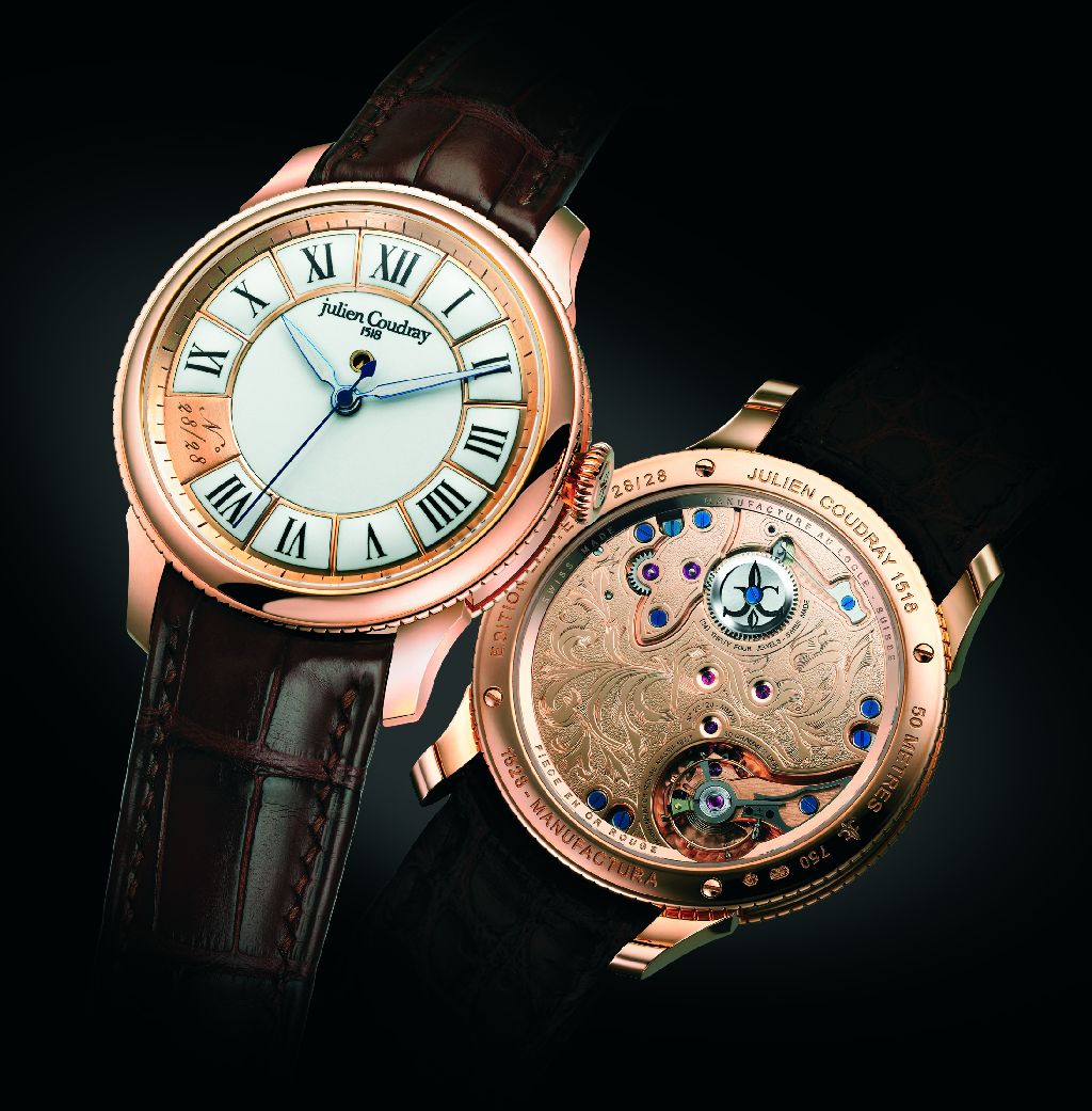 Новая модель Manufactura 1528 Limited Edition от швейцарской часовой компании Julien Coudray 1518 выпущена в четырех версиях: в 18-каратном желтом, 18-каратном розовом, 18-каратном белом золоте и в платине 950.